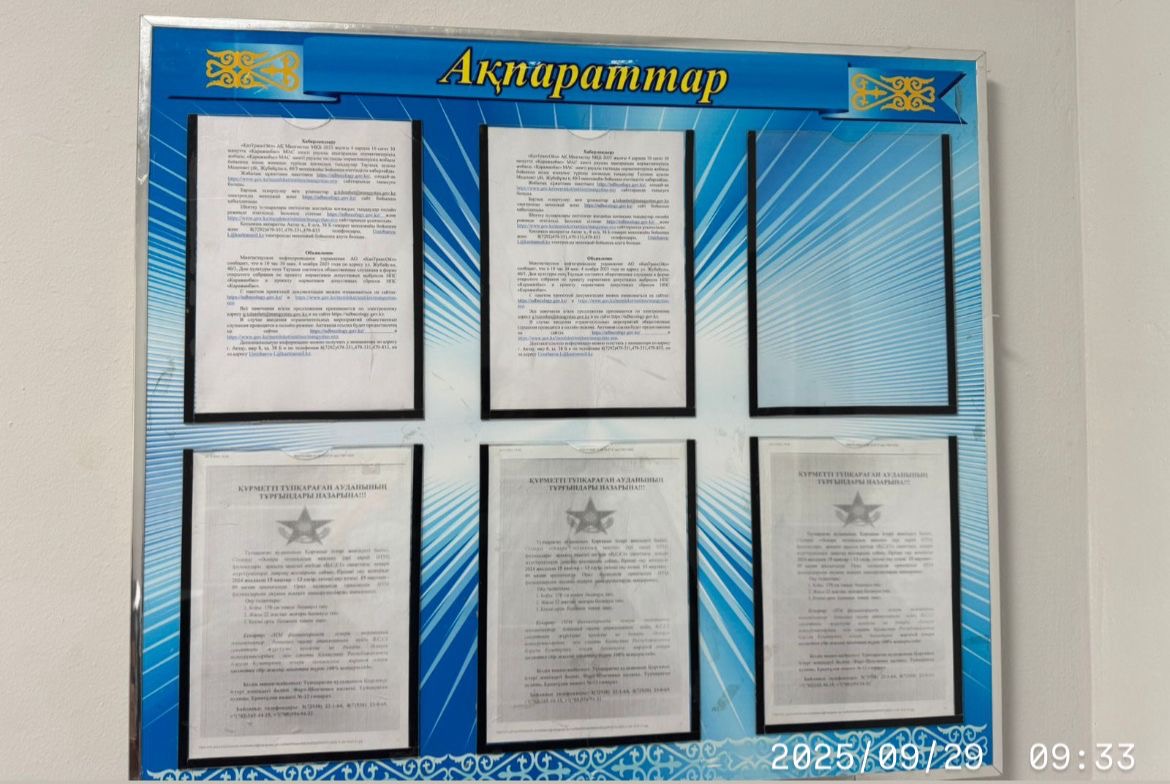 6. Объявление о проведении общественных слушаний на казахском и русском языках будет распространено следующими способами: