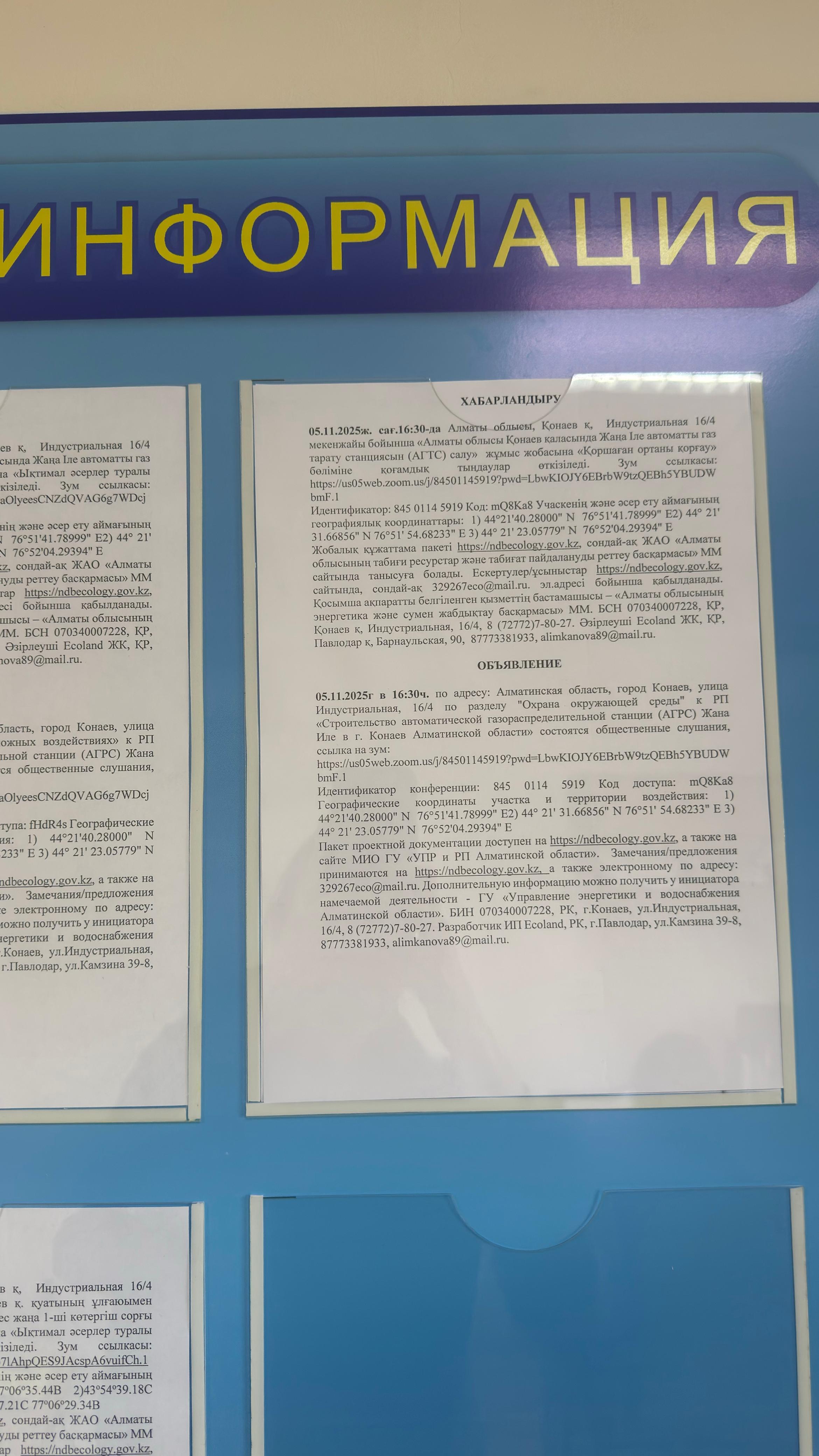 3. Общественные слушания организованны: Управление природных ресурсов и регулирования природопользования Алматинской области, 329267eco@mail.ru,