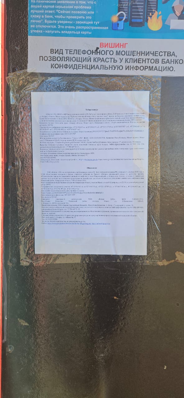 6. Объявление о проведении общественных слушаний на казахском и русском языках будет распространено следующими способами: