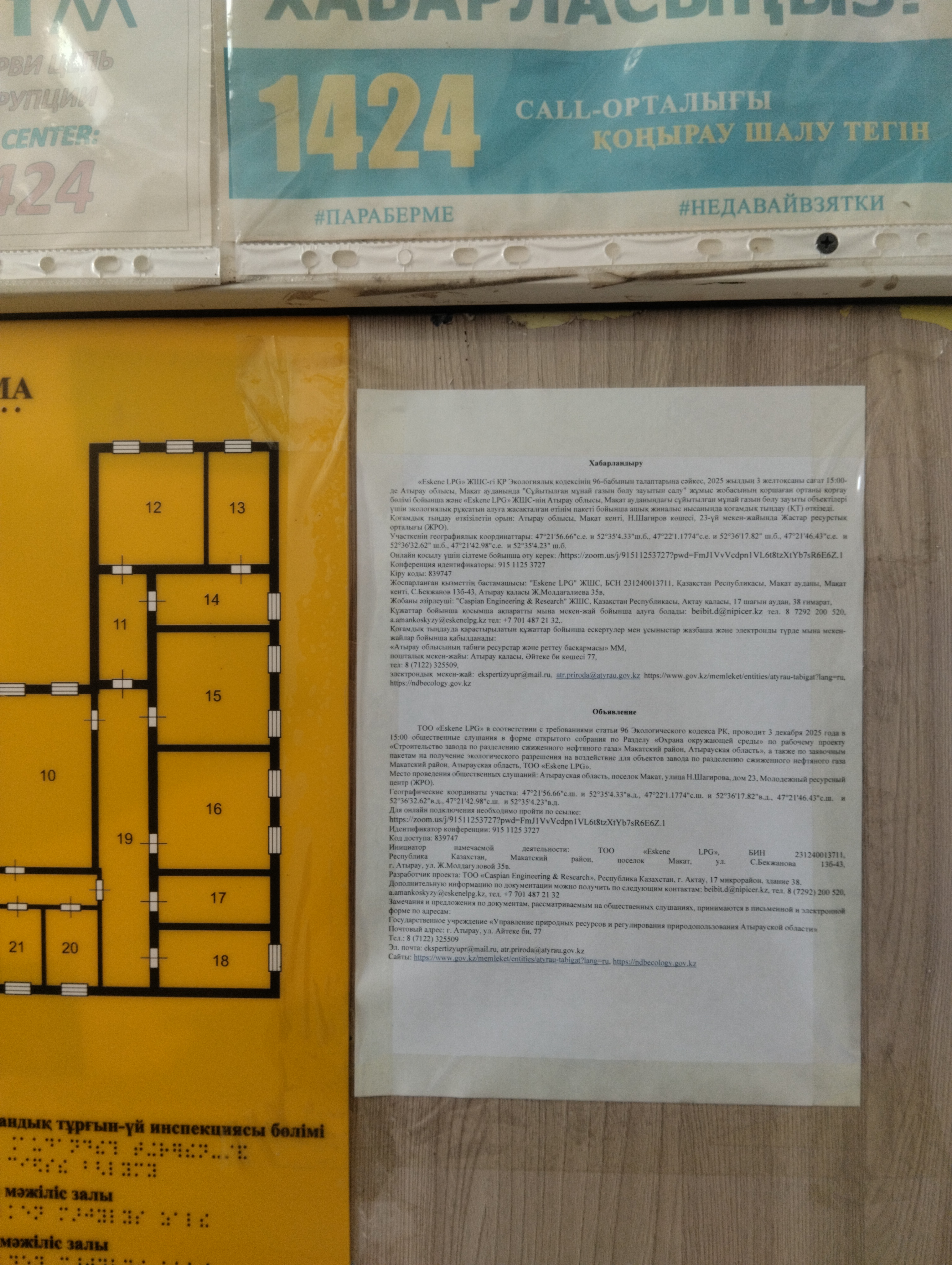 3. Общественные слушания организованны: Управление природных ресурсов и регулирования природопользования Атырауской области, atr.priroda@atyrau.gov.kz,