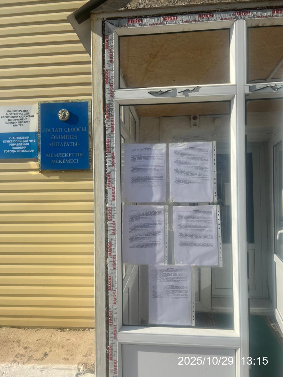 1.2. Место проведения: область Ұлытау, Жезказган Г.А., Талапский с.о., с.Талап, ул. Мәңгілік Ел, 3 (здание ГУ «Аппарат акима села Талап»). Ссылка для онлайн подключения: https://us06web.zoom.us/j/3467453931?pwd=OWFnOGVpQjFMTmE0TDVtRllFcXlZdz09&omn=89117804817 Идентификатор конференции: 346 745 3931 Код доступа: YGC0Ki