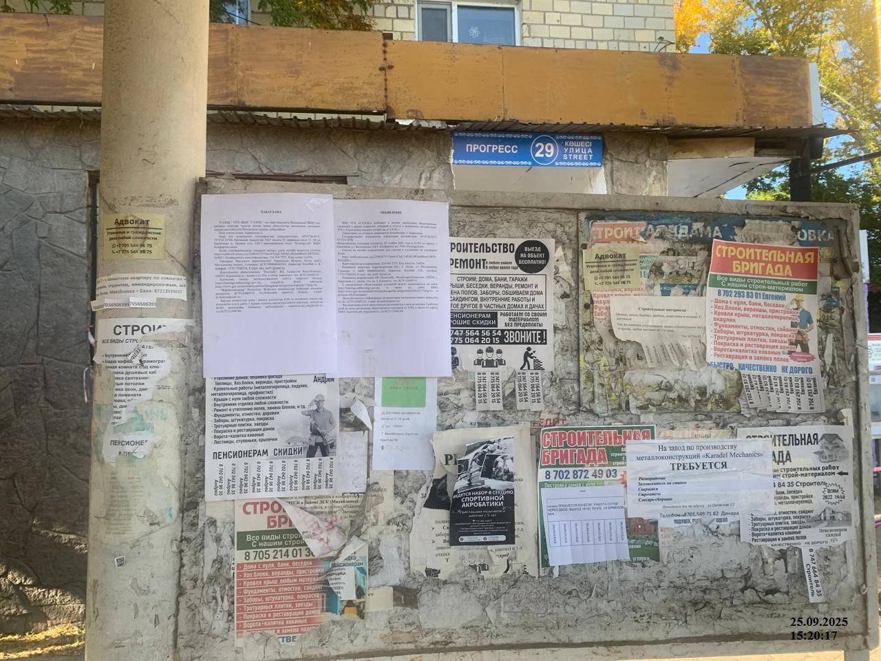 6. Объявление о проведении общественных слушаний на казахском и русском языках будет распространено следующими способами: