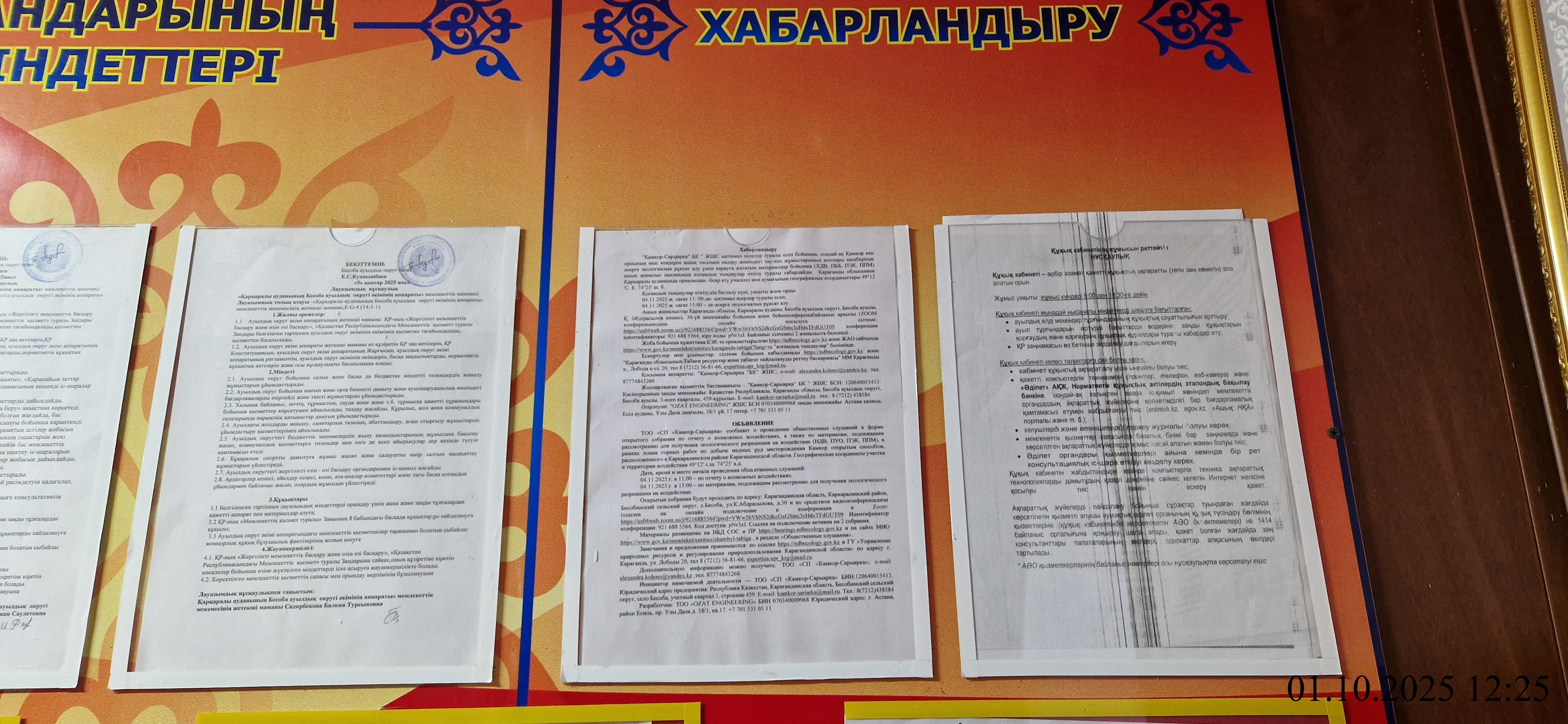 6. Объявление о проведении общественных слушаний на казахском и русском языках будет распространено следующими способами: