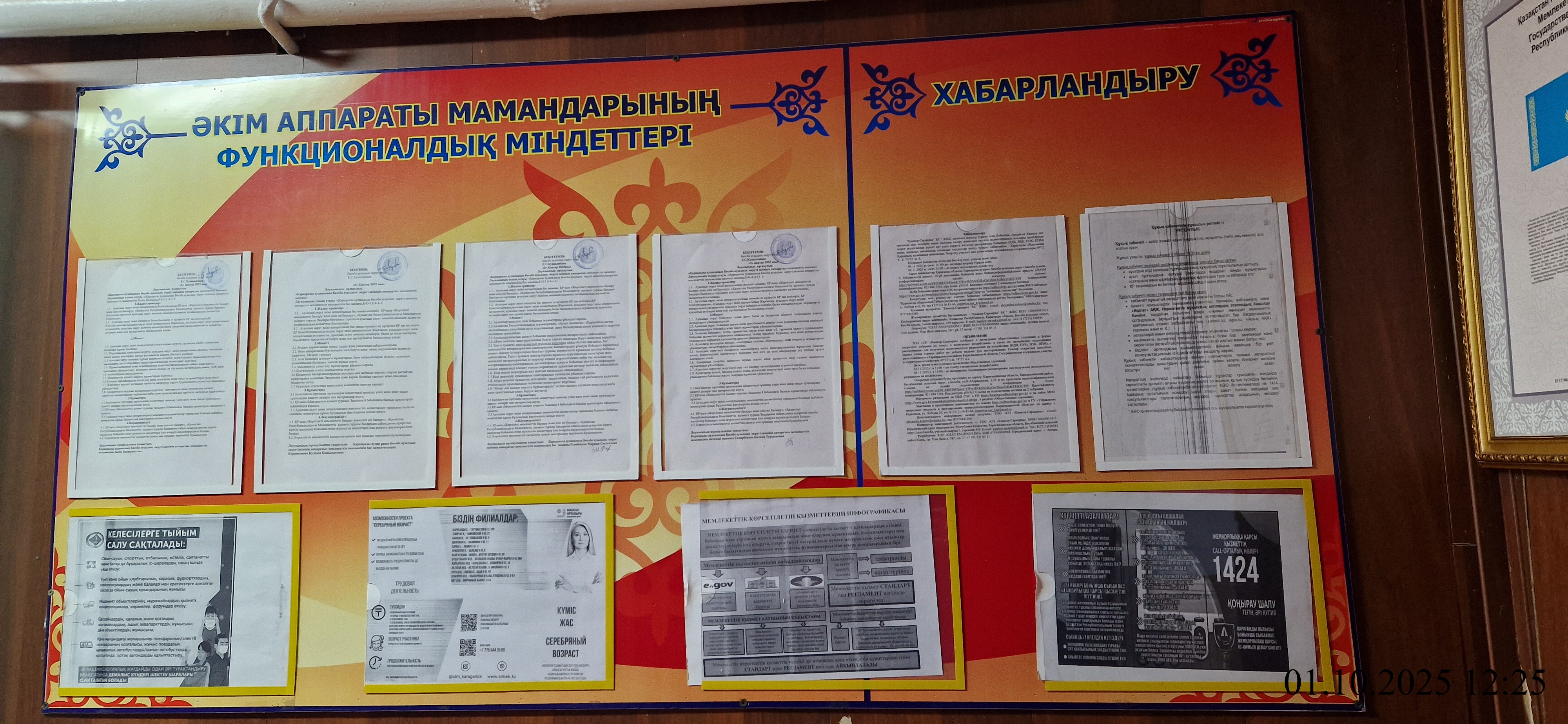 6.3. расположение мест, специально предназначенных для Размещения печатных объявлений (доски объявлений): Доска объявлений в здании ГУ «Аппарат акима Бесобинского сельского округа Каркаралинского района»