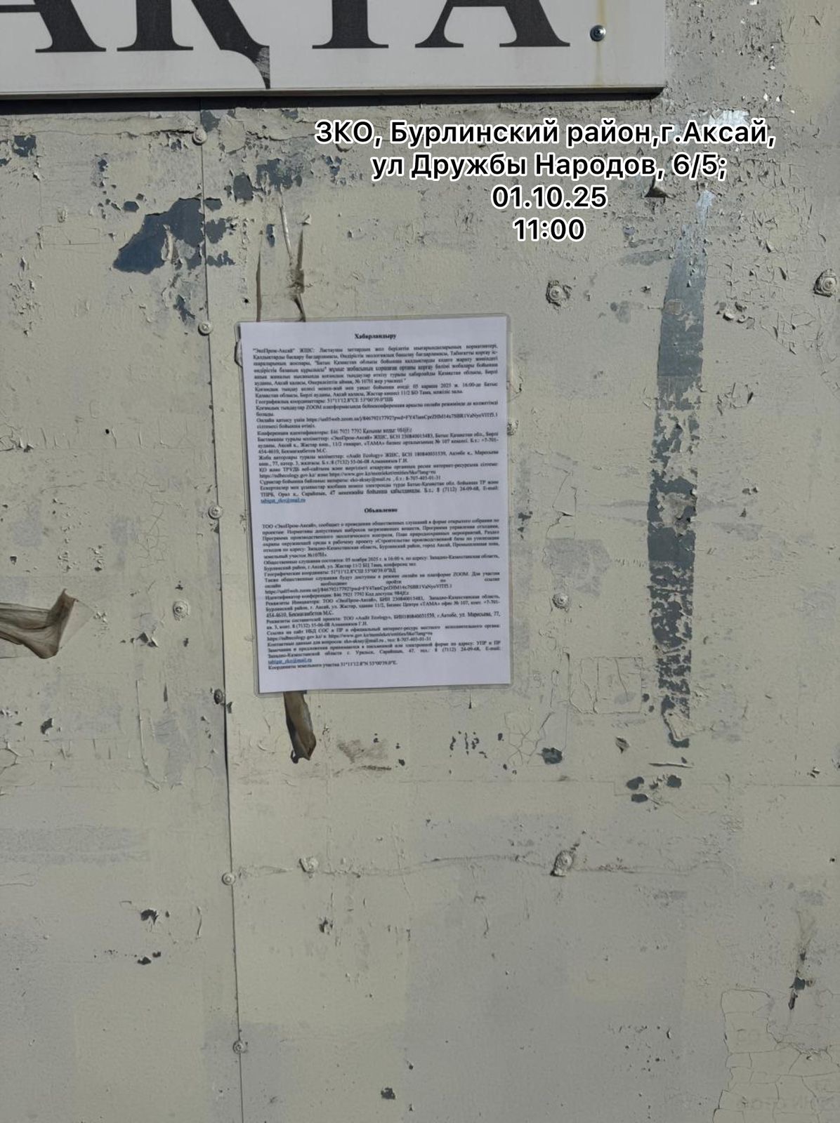 3. Общественные слушания организованны: Управление природных ресурсов и регулирования природопользования Западно-Казахстанской области, zko_forest@bko.gov.kz,