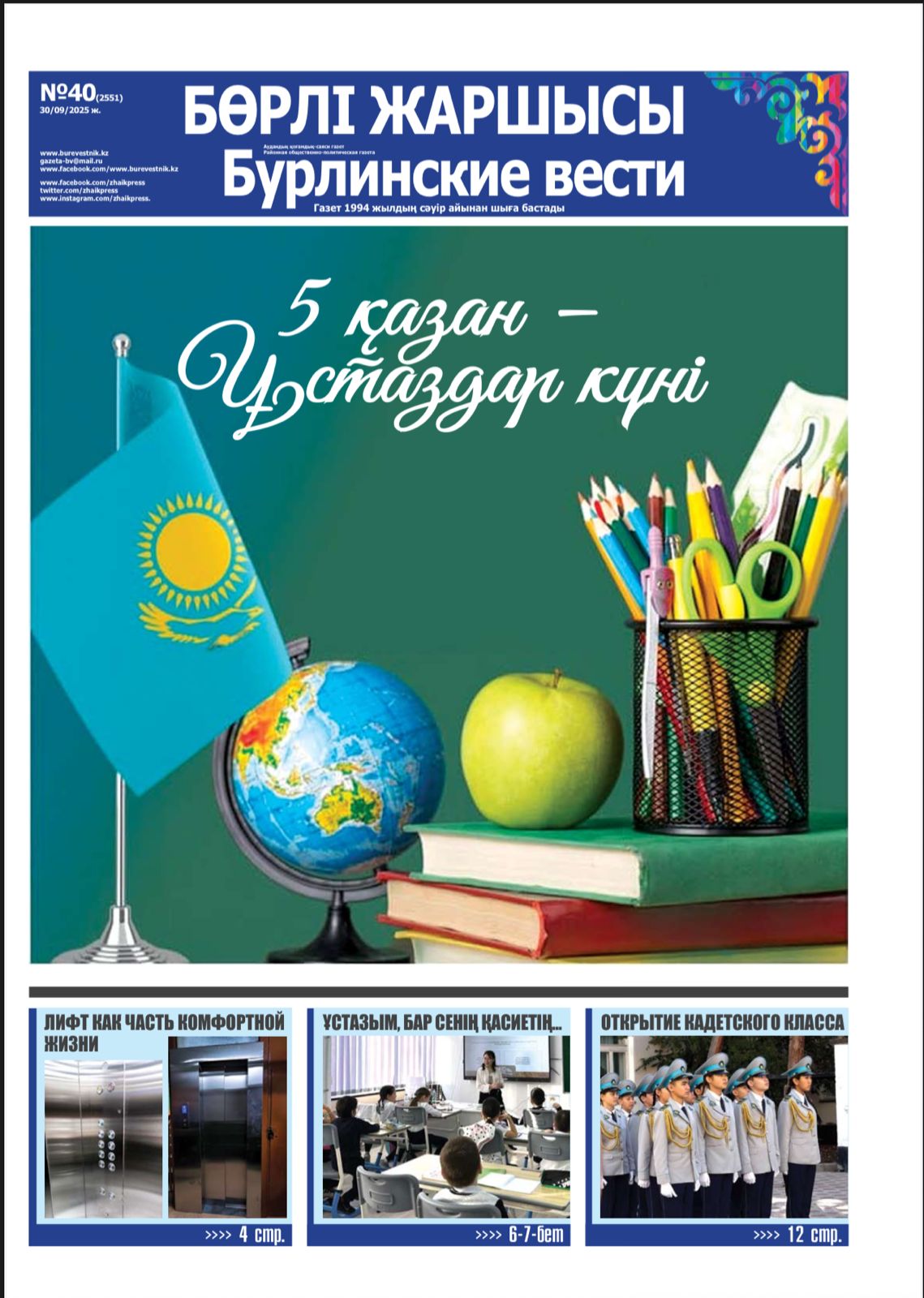 6.1. Наименование газеты, где будет размещено объявление: Районная общественно-политическая газета "Бөрлі жаршысы - Бурлинские вести"