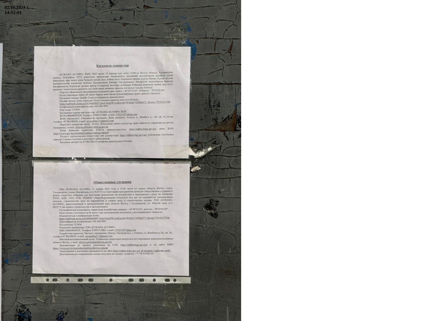 3. Общественные слушания организованны: Главный специалист УПР и ПР Жетысуйской области, priroda@zhetisu.gov.kz,