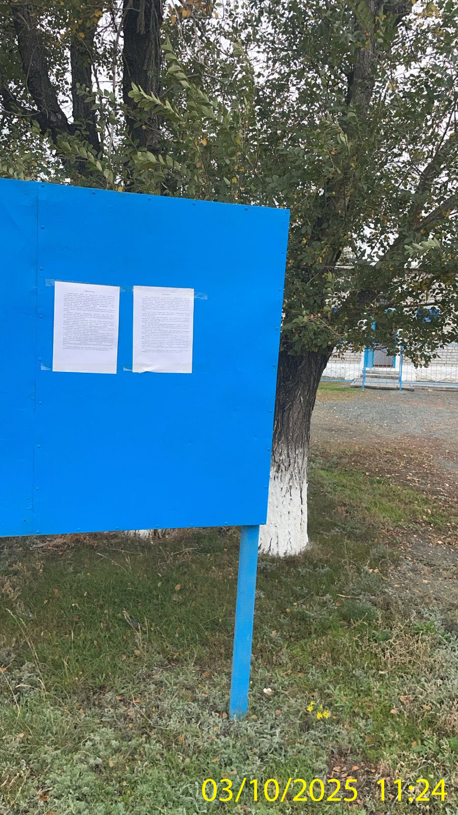 6.3. расположение мест, специально предназначенных для Размещения печатных объявлений (доски объявлений): Акимат Села Кулаколь