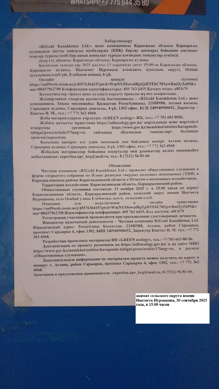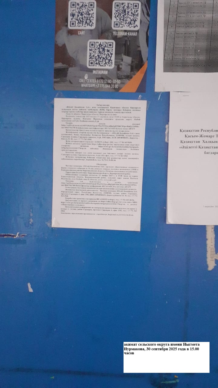 3. Общественные слушания организованны: Управление природных ресурсов и регулирования природопользования Карагандинской области, expertiza.upr_krg@mail.ru,