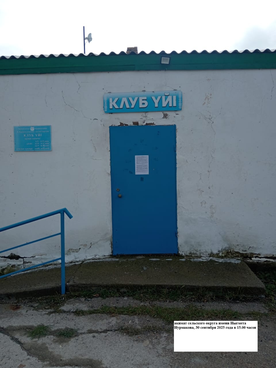 1.2. Место проведения: Карагандинская область, Каркаралинский район, сельский округ имени Ныгмета Нурмакова, село Осибай улица Елебекова, дом 6, сельский клуб. Описание для подключения к онлайн трансляции https://us05web.zoom.us/j/4557636415?pwd=WmNYSSswalRpZjdITEhCM1pwRmQyZz09&omn=88437962708 Идентификатор конференции: 455 763 6415, Код доступа: a8Ub79