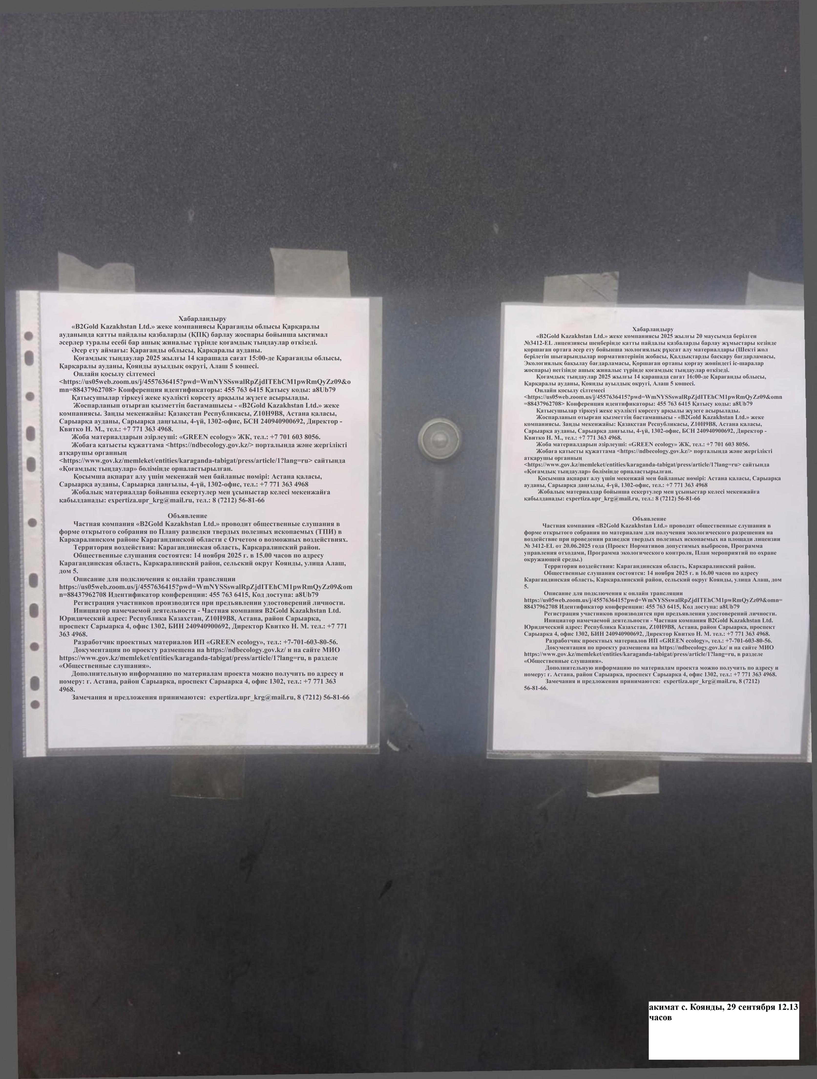 3. Общественные слушания организованны: Управление природных ресурсов и регулирования природопользования Карагандинской области, expertiza.upr_krg@mail.ru,