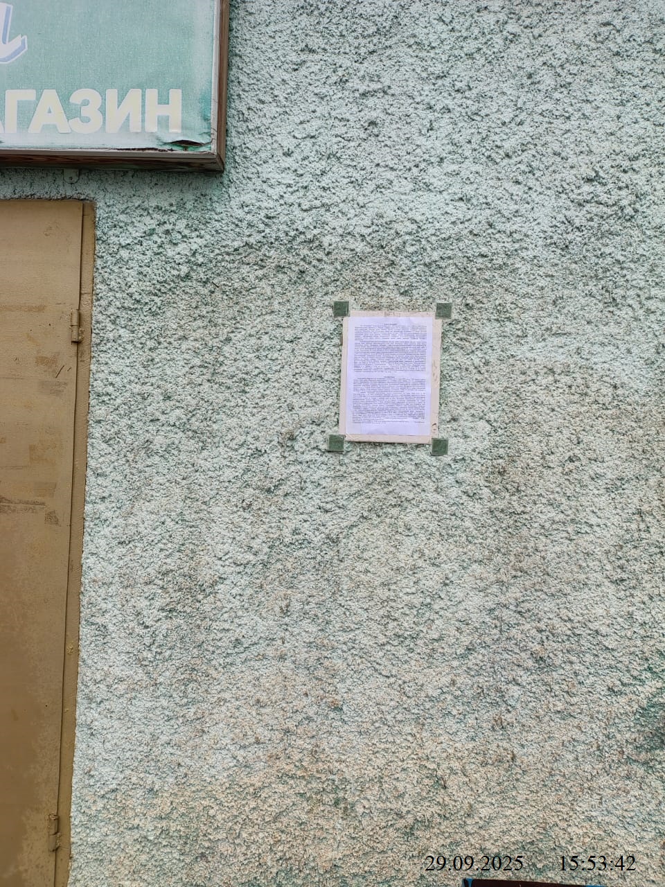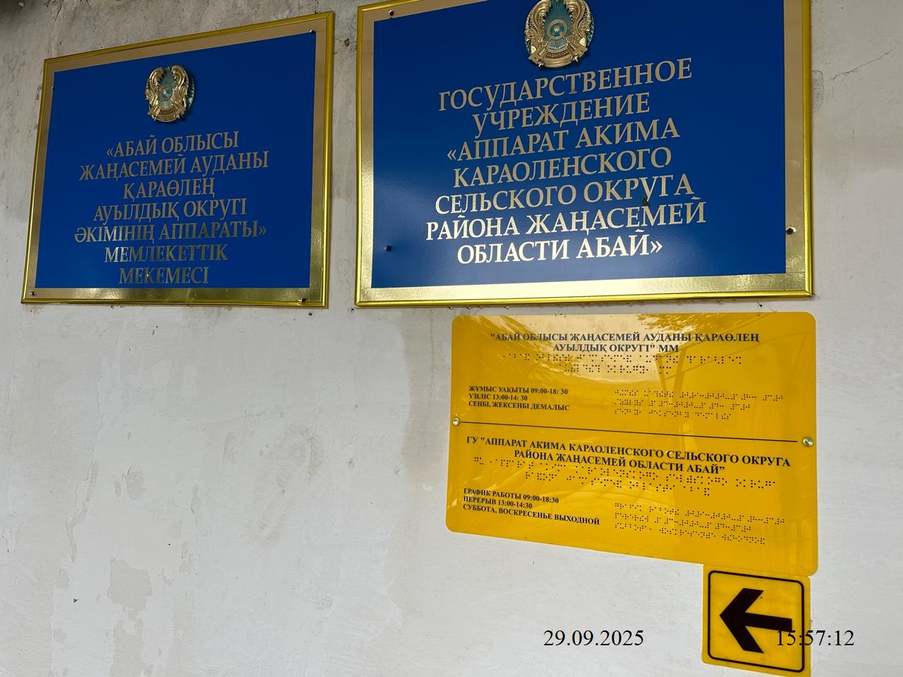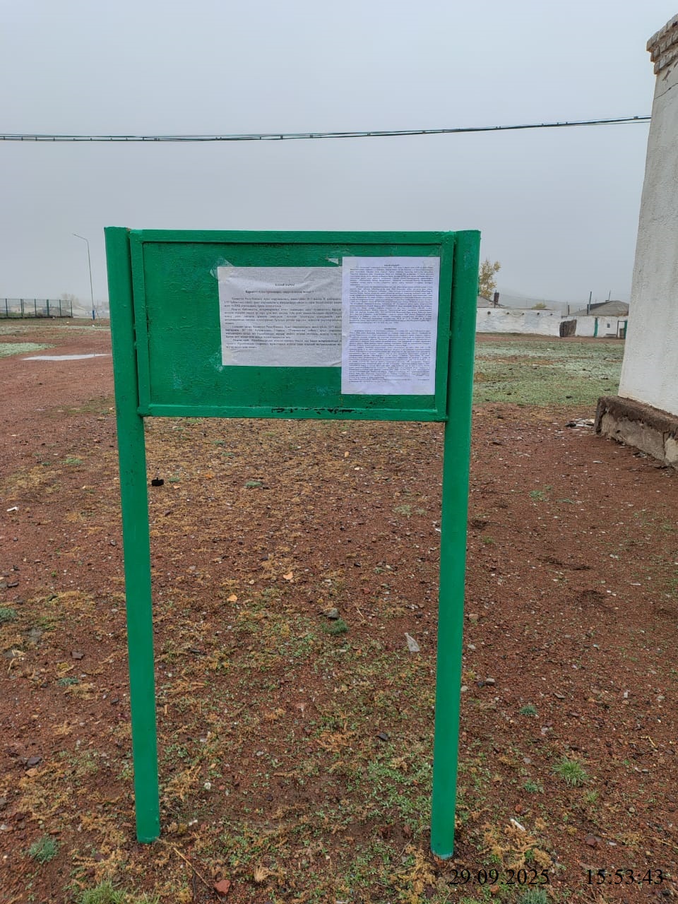 6.3. расположение мест, специально предназначенных для Размещения печатных объявлений (доски объявлений): Доска объявлений в Акимате с.о. Караолен, с.Кайнар, улица Кайнар, дом 421