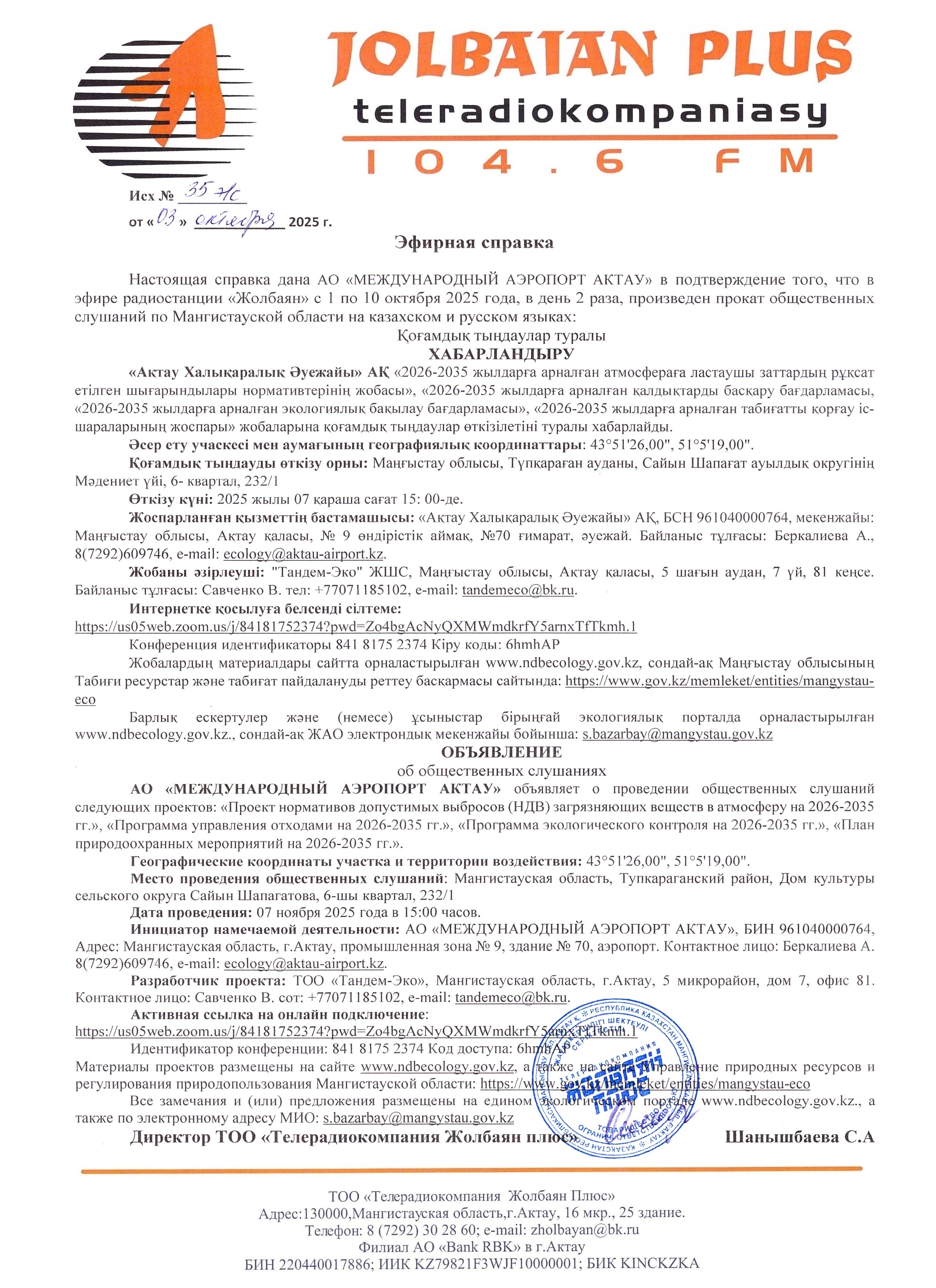 1.3. Контакты:hse@aktau-airport.kz; https://us05web.zoom.us/j/84181752374?pwd=Zo4bgAcNyQXMWmdkrfY5arnxTfTkmh.1 ;
