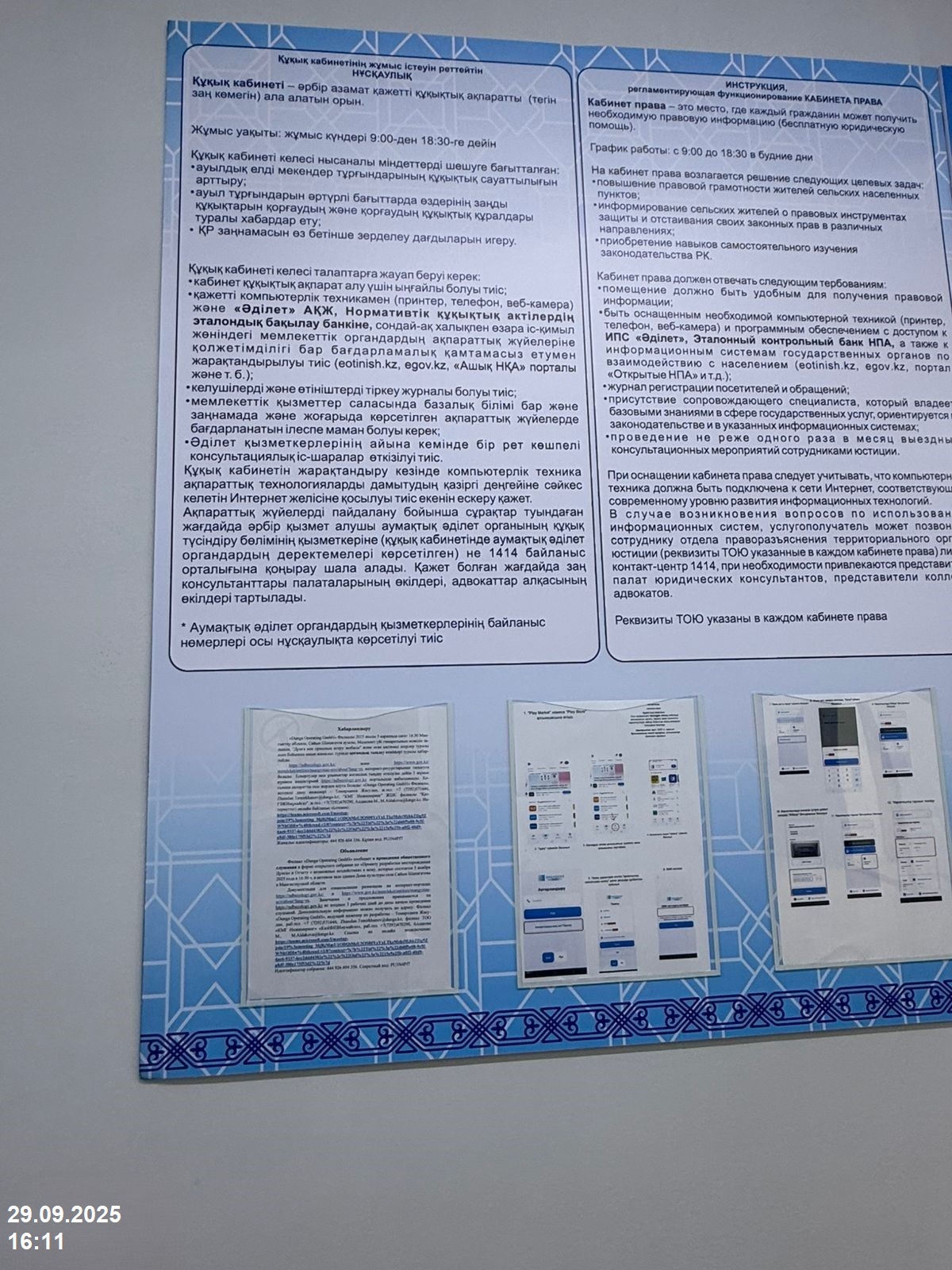6.3. расположение мест, специально предназначенных для Размещения печатных объявлений (доски объявлений): Доски объявлений Дома культуры и Акимат с.о.Саина Шапагатова
