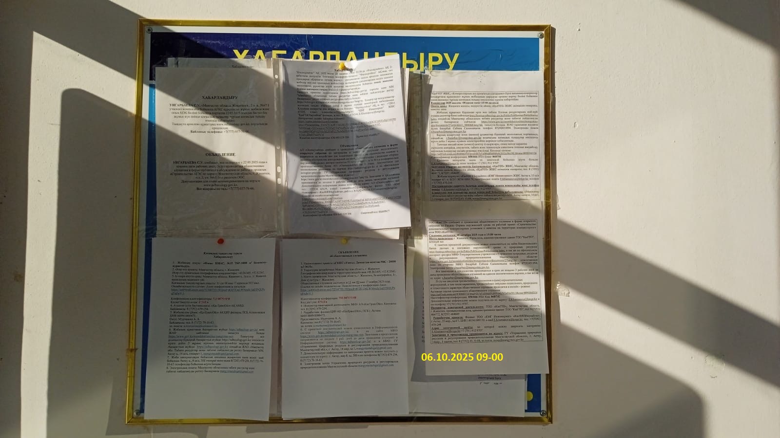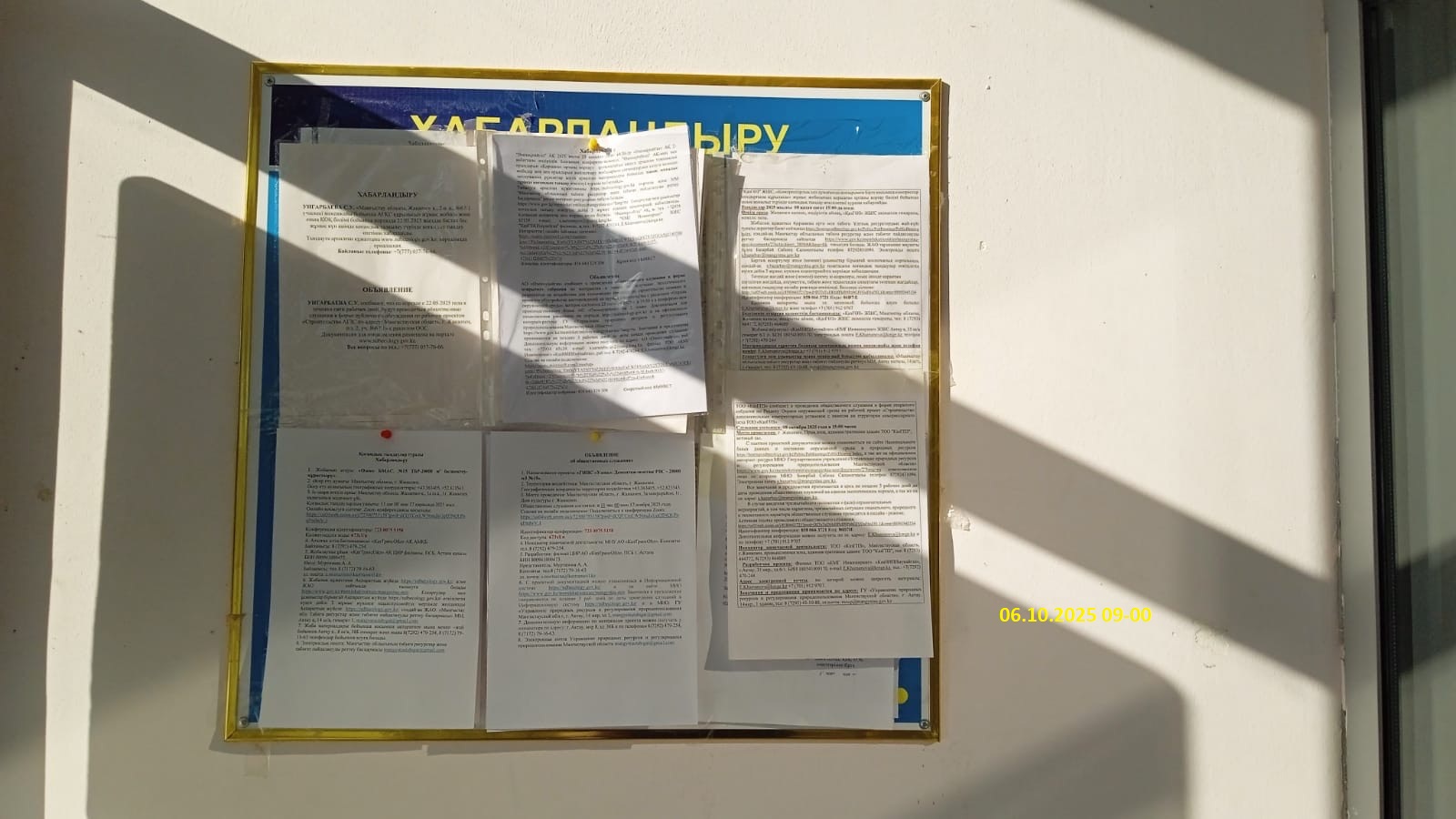 6.3. расположение мест, специально предназначенных для Размещения печатных объявлений (доски объявлений): Доска объявлений Акимата г. Жанаозен