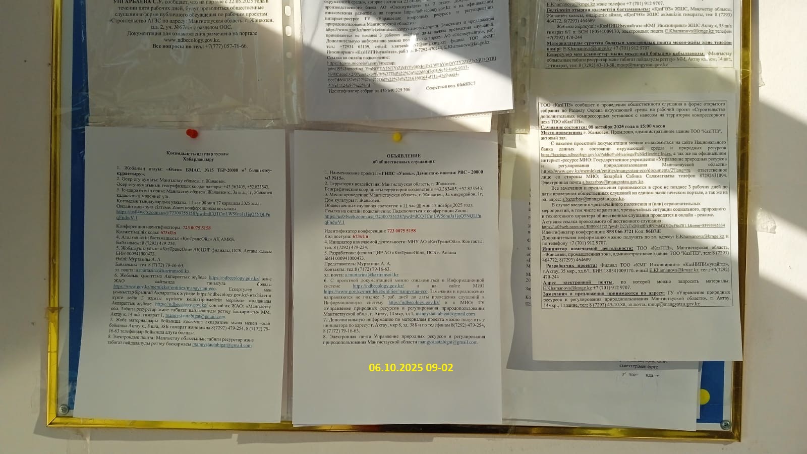 3. Общественные слушания организованны: Управление природных ресурсов и регулирования природопользования Мангистауской области, s.bazarbay@mangystau.gov.kz,