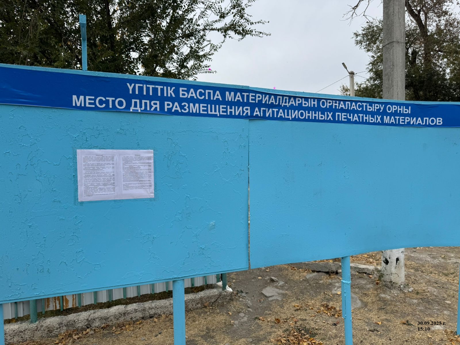 6.3. расположение мест, специально предназначенных для Размещения печатных объявлений (доски объявлений): Доска объявление акимата