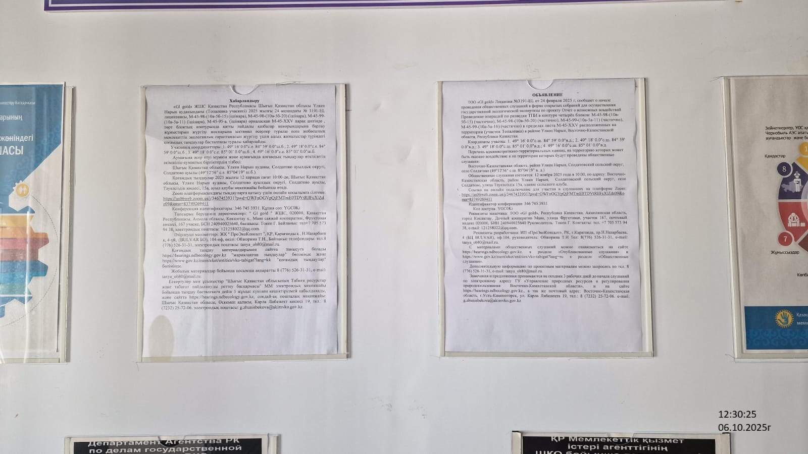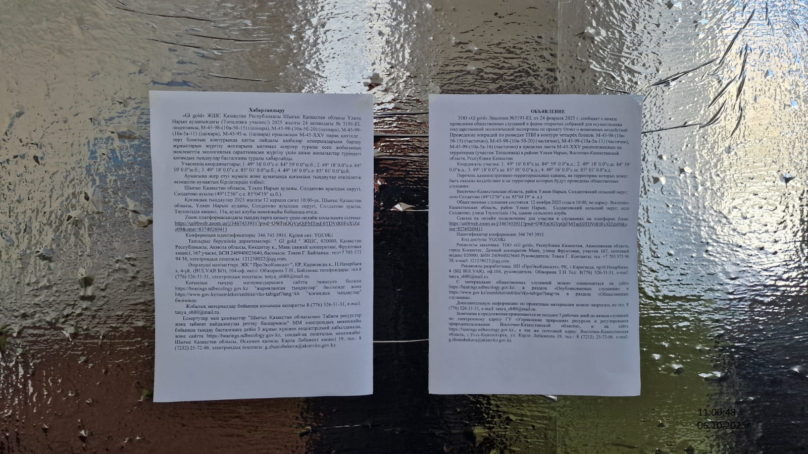 3. Общественные слушания организованны: Управление природных ресурсов и регулирования природопользования Восточно-Казахстанской области, g.zhunisbekova@akimvko.gov.kz,