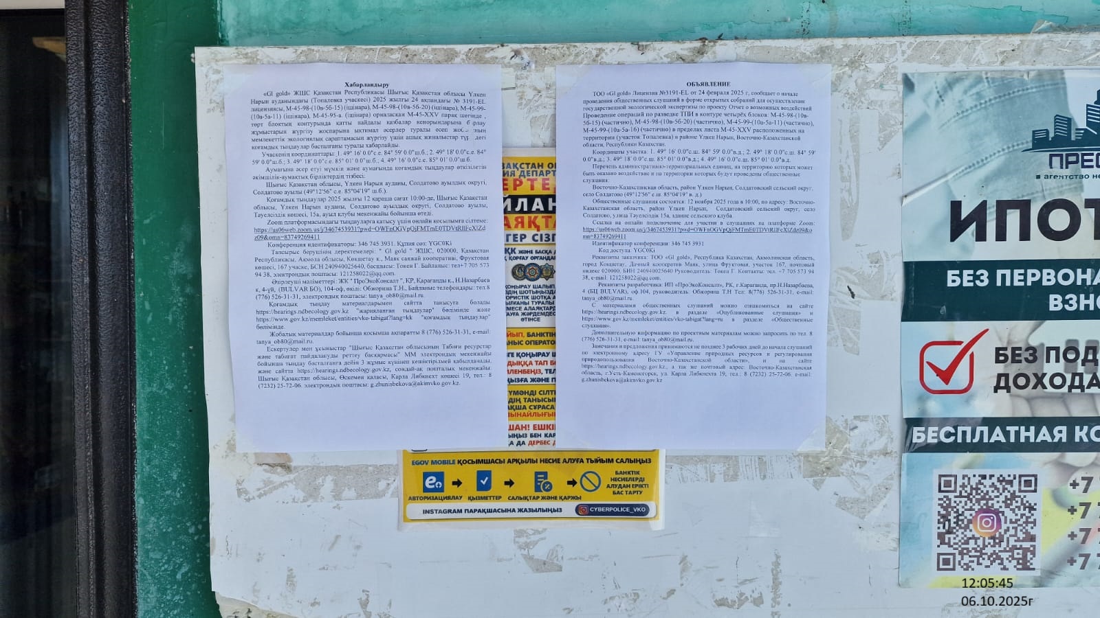 6. Объявление о проведении общественных слушаний на казахском и русском языках будет распространено следующими способами: