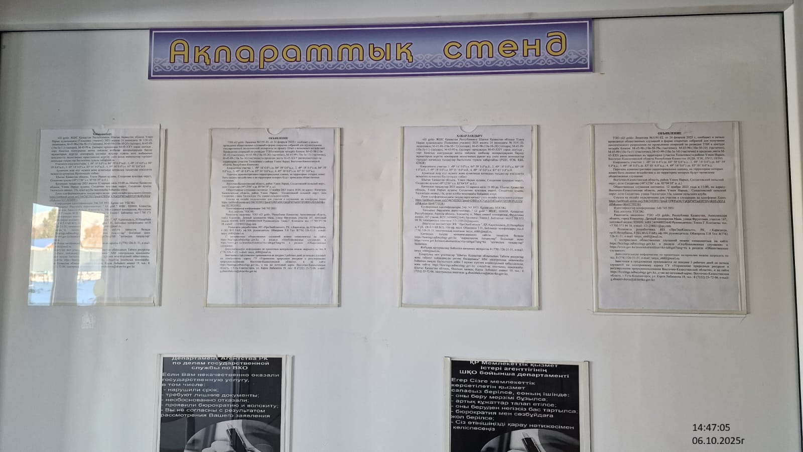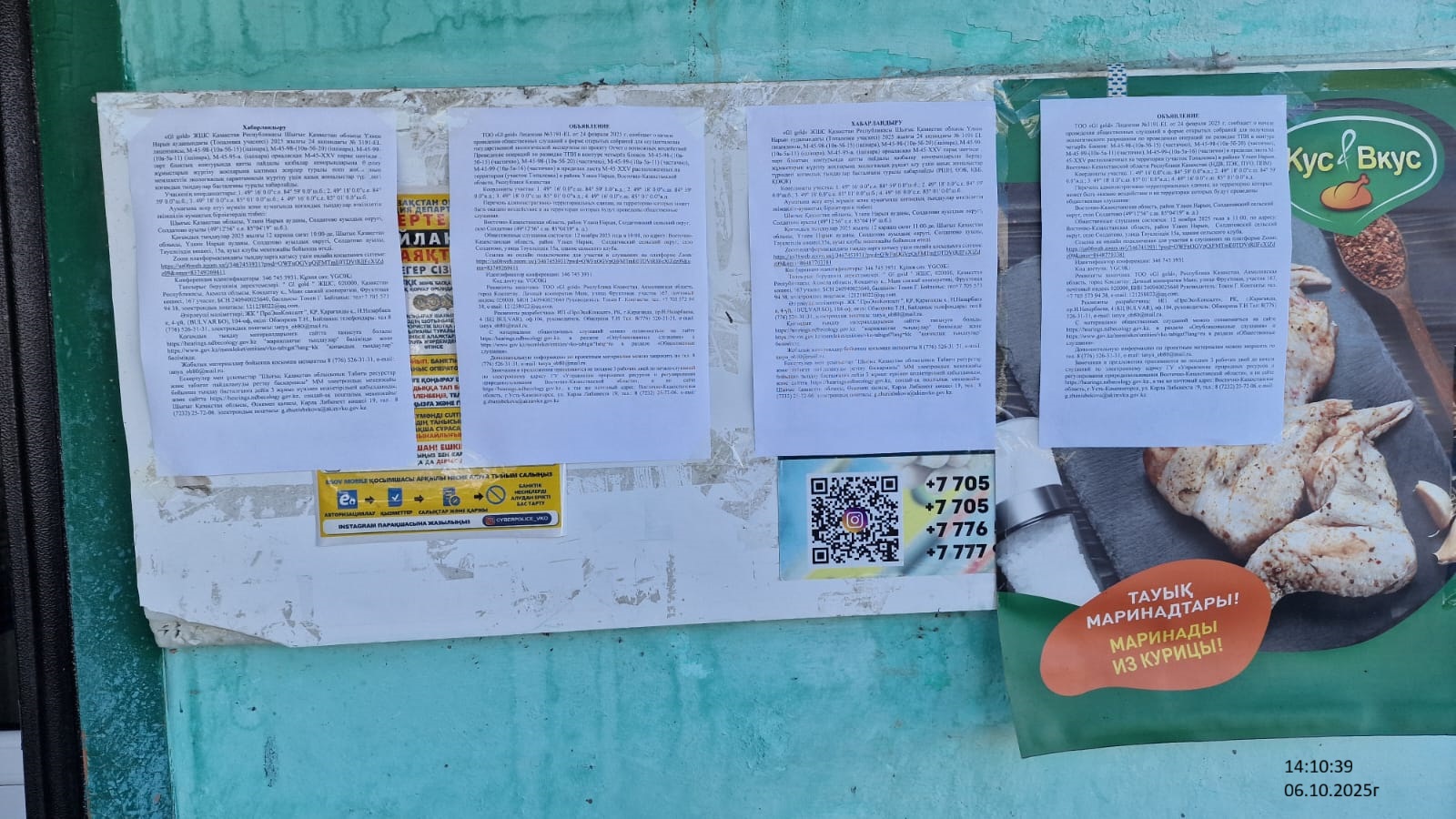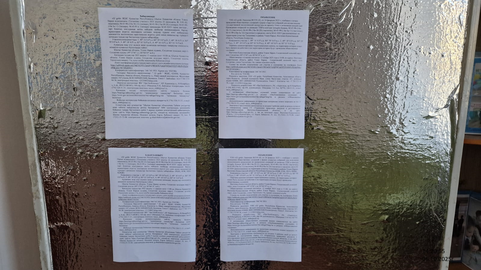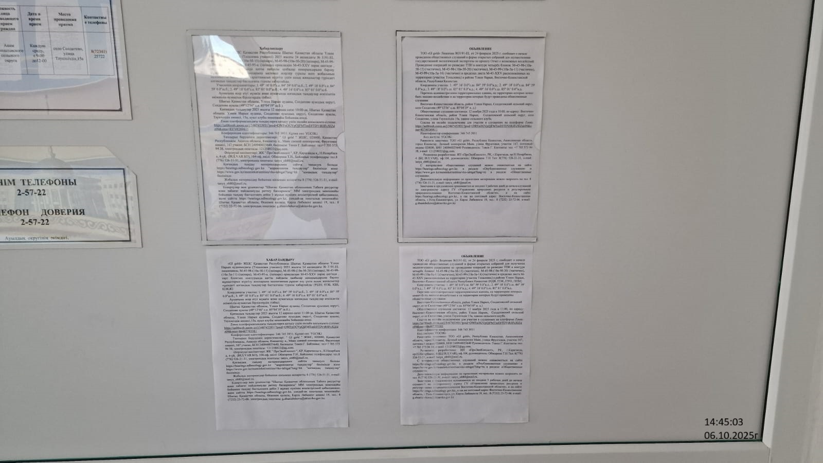 6. Объявление о проведении общественных слушаний на казахском и русском языках будет распространено следующими способами: