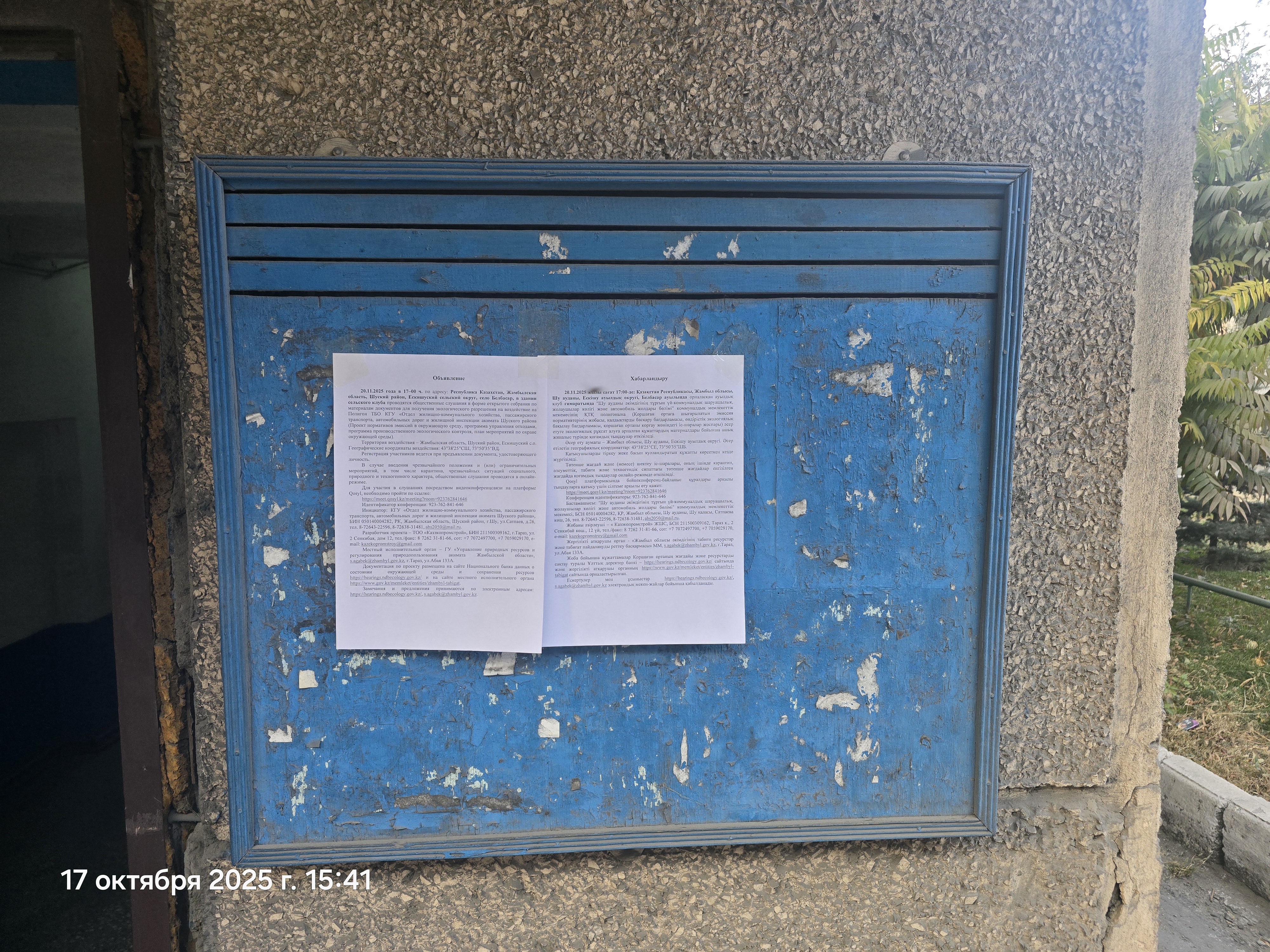 6. Объявление о проведении общественных слушаний на казахском и русском языках будет распространено следующими способами:
