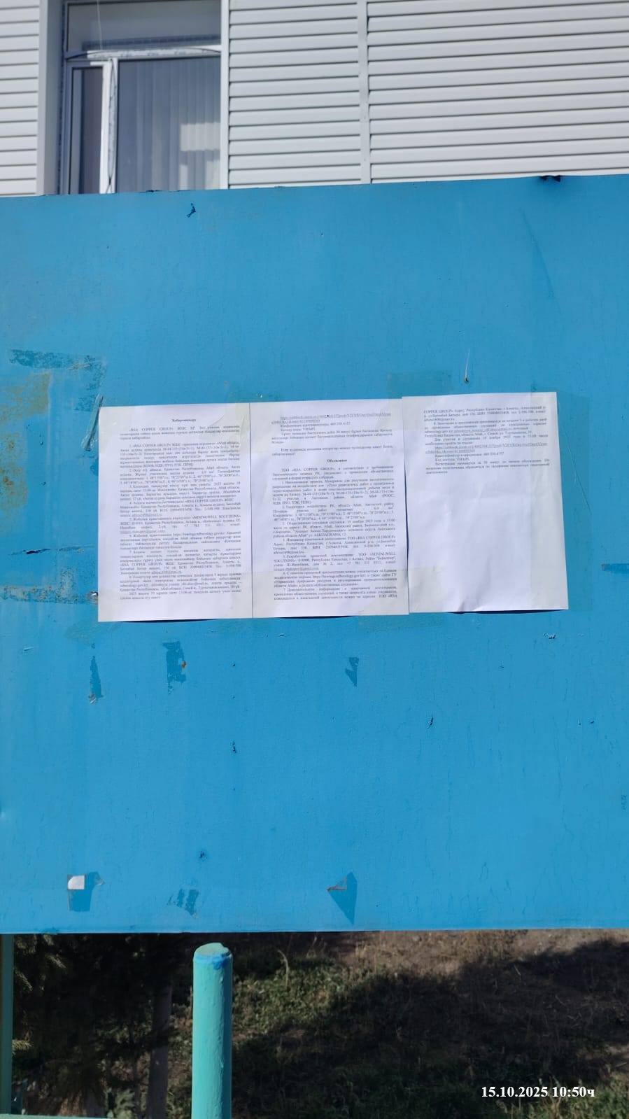 6. Объявление о проведении общественных слушаний на казахском и русском языках будет распространено следующими способами: