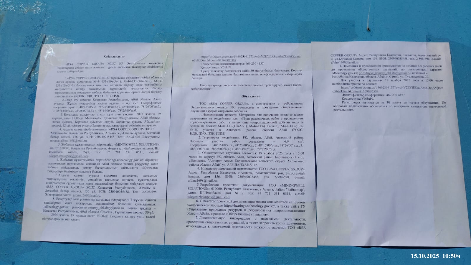 3. Общественные слушания организованны: Главный специалист УПР и ПР область Абай, prirodnyye_resursy_obl.abay@mail.ru,