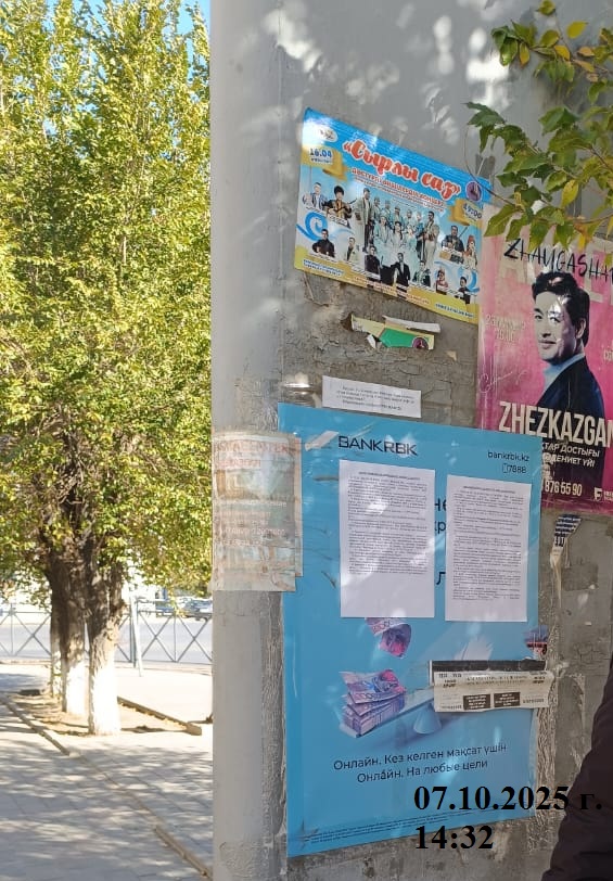6. Объявление о проведении общественных слушаний на казахском и русском языках будет распространено следующими способами: