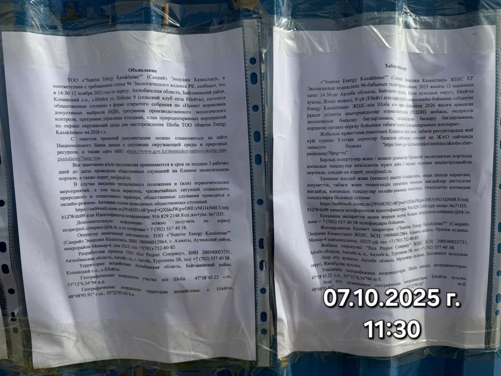 3. Общественные слушания организованны: Управление природных ресурсов и регулирования природопользования Актюбинской области, expert_oos@mail.ru,
