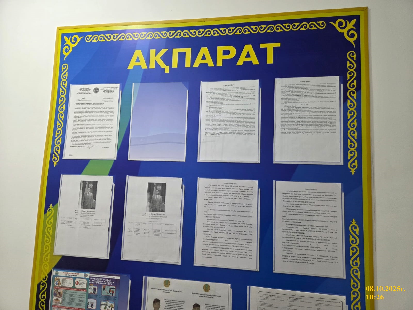 6.3. расположение мест, специально предназначенных для Размещения печатных объявлений (доски объявлений): область Абай, Аягозский район, Копинский с.о., с.Копа, 8 улица, 146А (информационный стенд акимата)