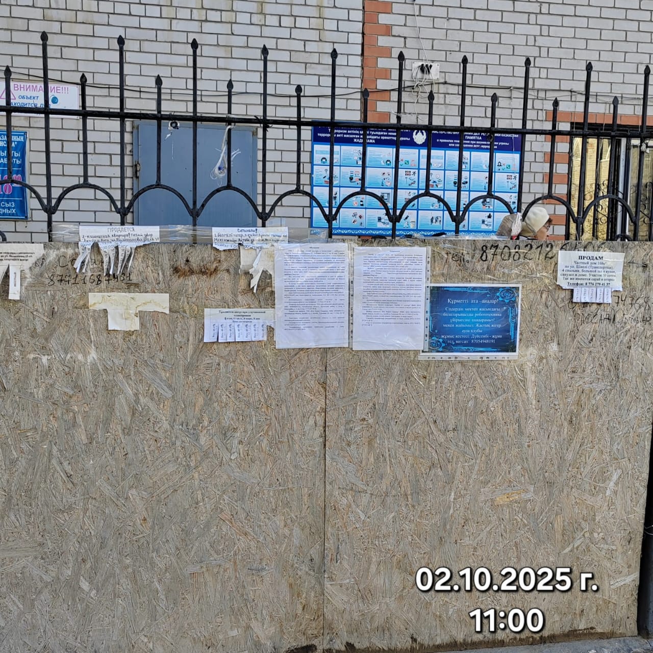 6.3. расположение мест, специально предназначенных для Размещения печатных объявлений (доски объявлений): Актюбинская область, Алгинский район, Алгинская г.а., г.Алга Городской акимат ул. Байтурсынова 20