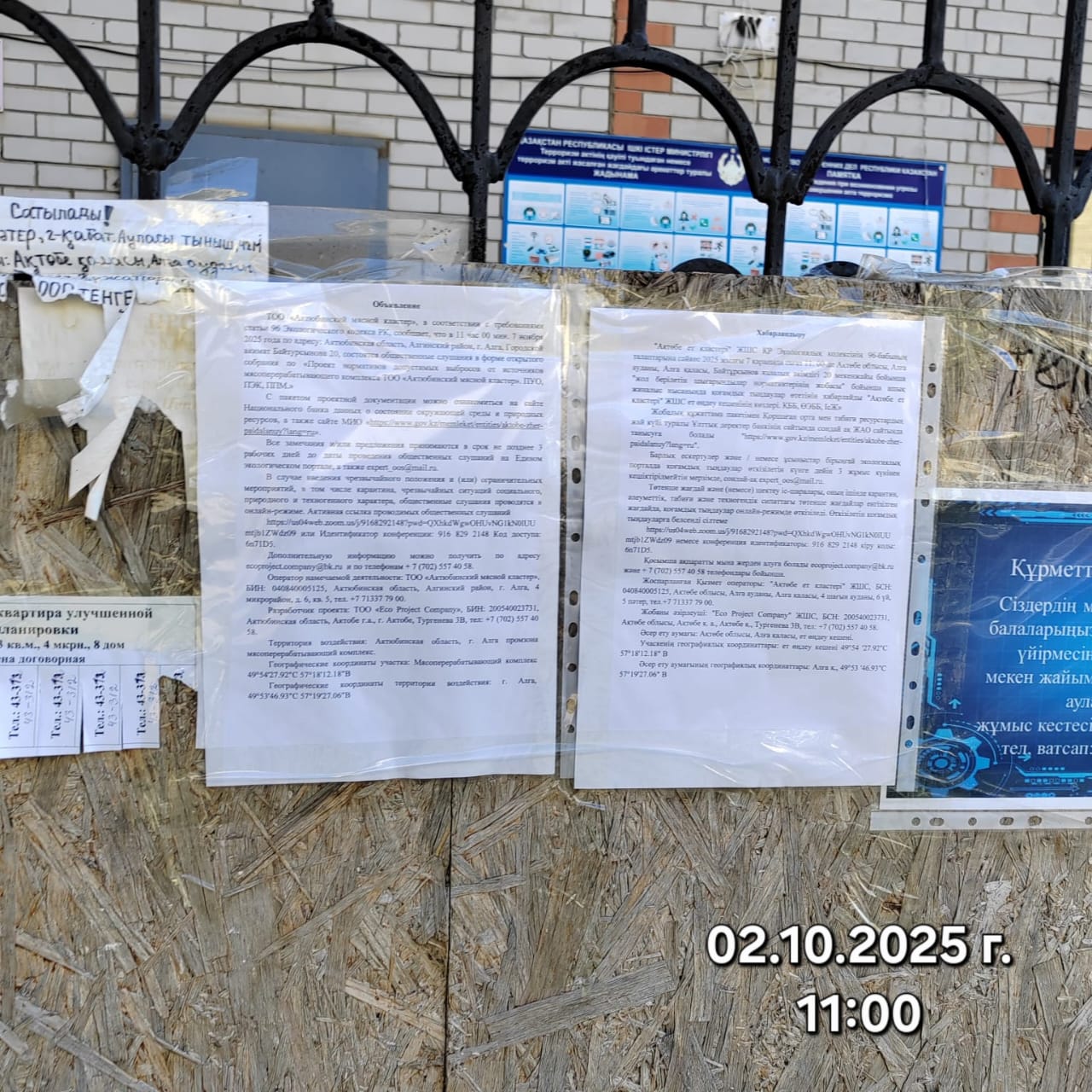 3. Общественные слушания организованны: Управление природных ресурсов и регулирования природопользования Актюбинской области, expert_oos@mail.ru,