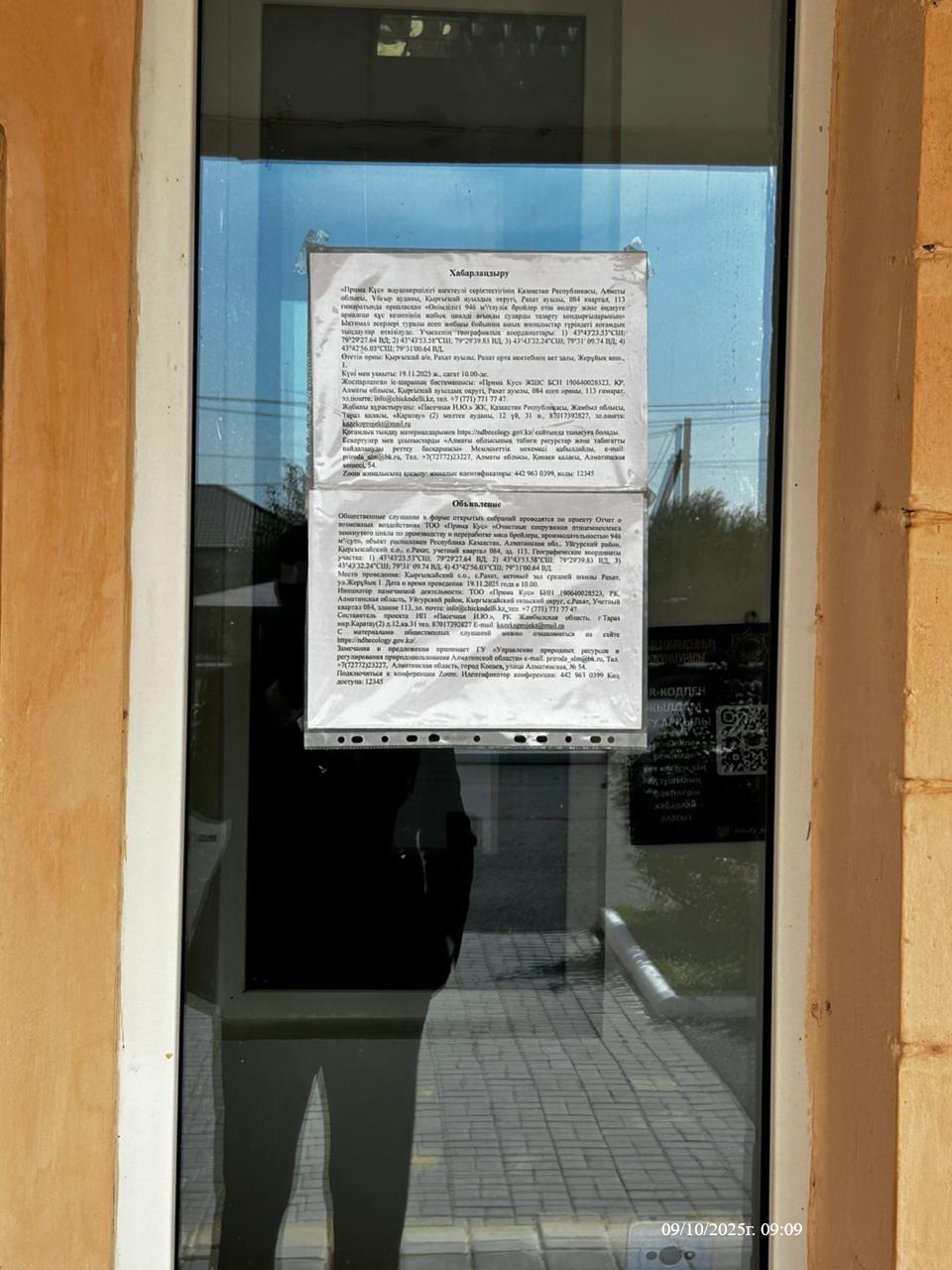 3. Общественные слушания организованны: Управление природных ресурсов и регулирования природопользования Алматинской области, 329267eco@mail.ru,