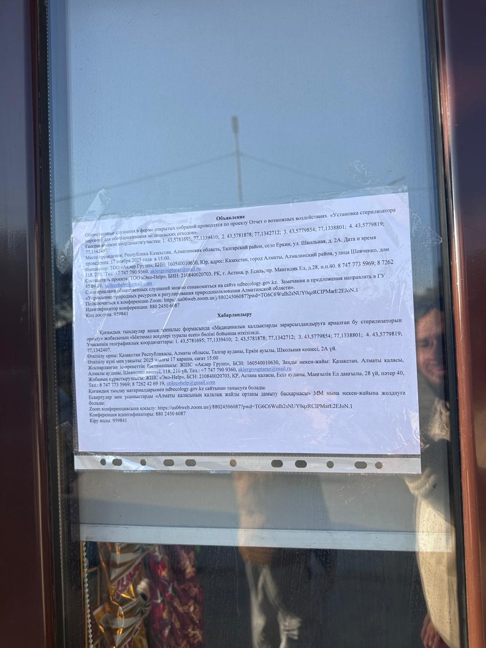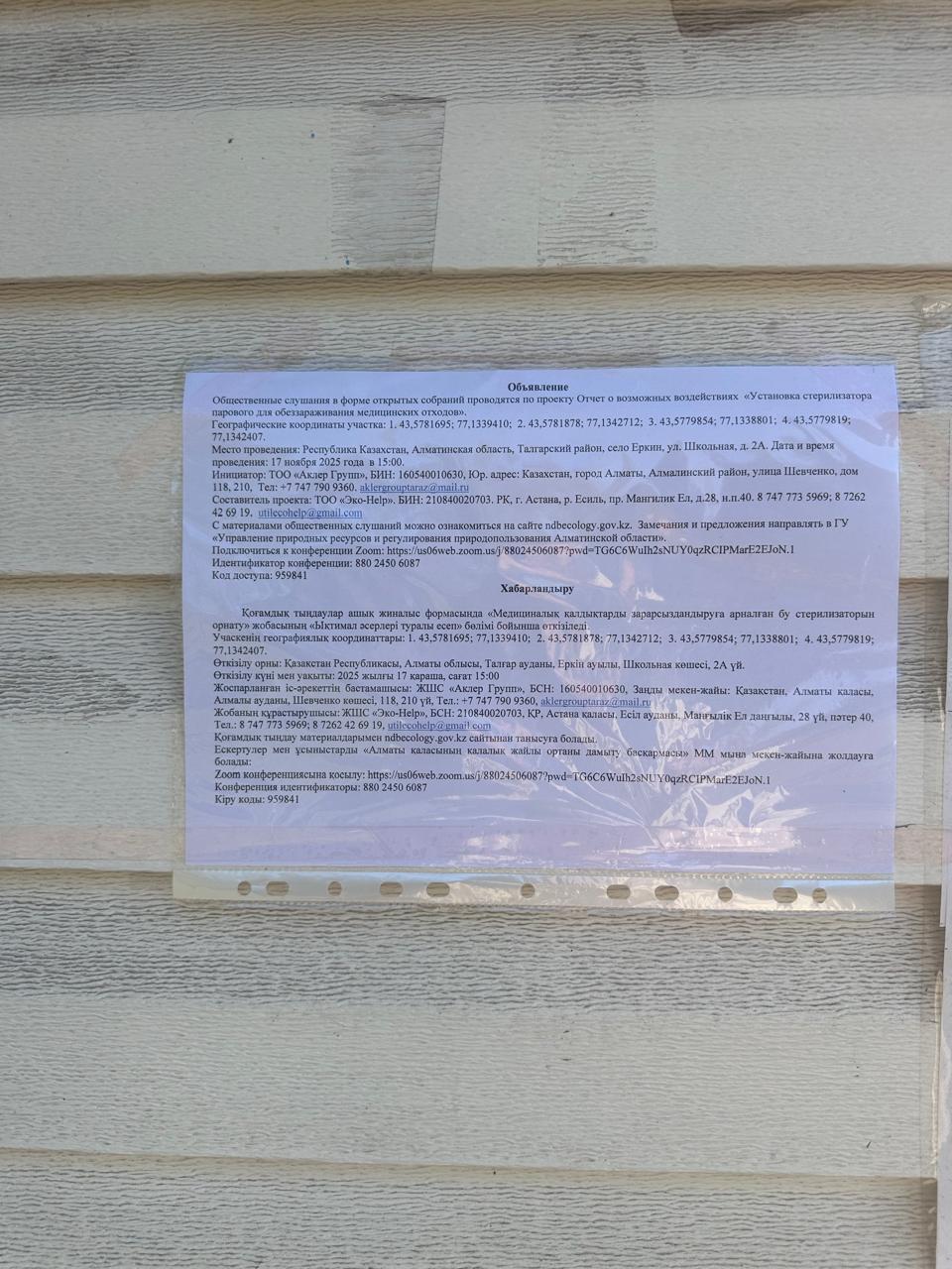 3. Общественные слушания организованны: Управление природных ресурсов и регулирования природопользования Алматинской области, 329267eco@mail.ru,