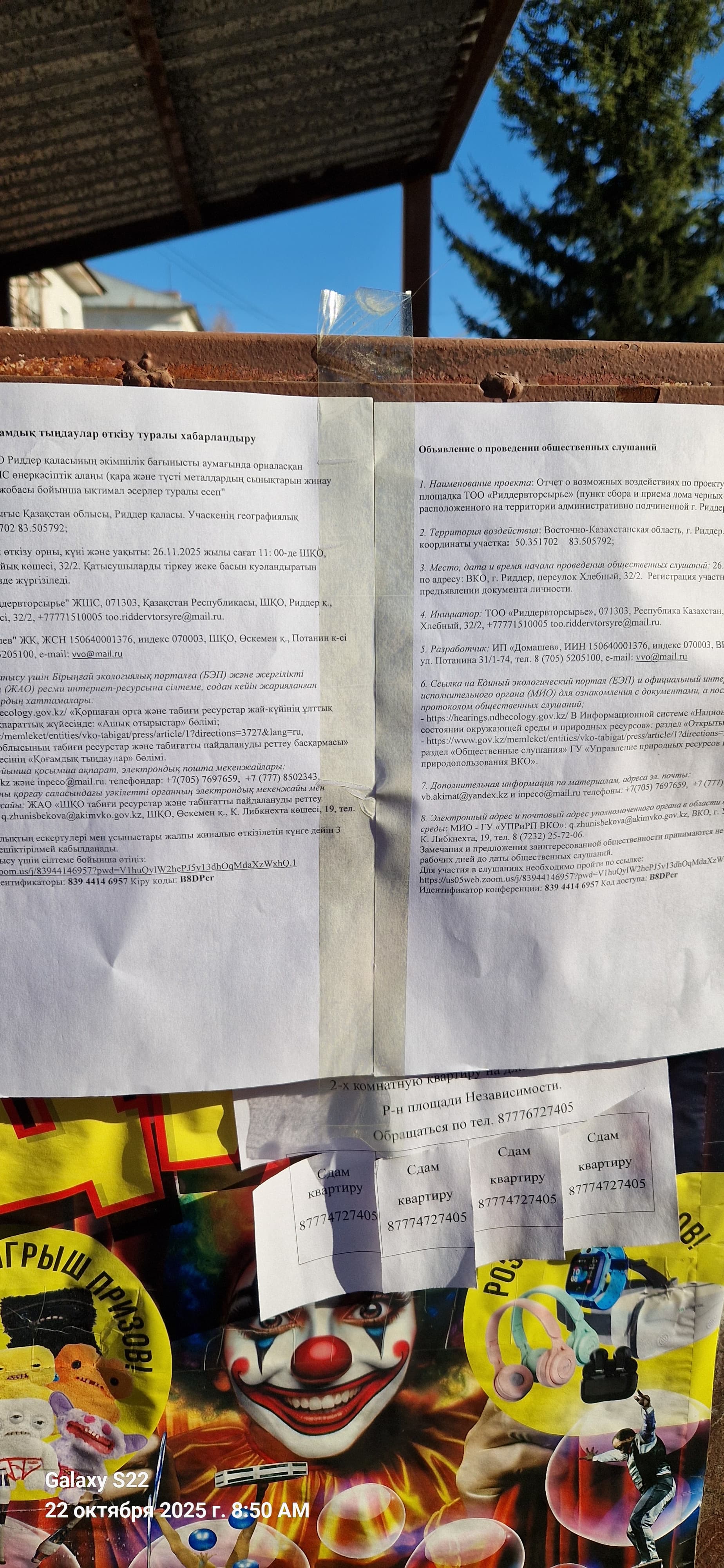 3. Общественные слушания организованны: Управление природных ресурсов и регулирования природопользования Восточно-Казахстанской области, g.zhunisbekova@akimvko.gov.kz,
