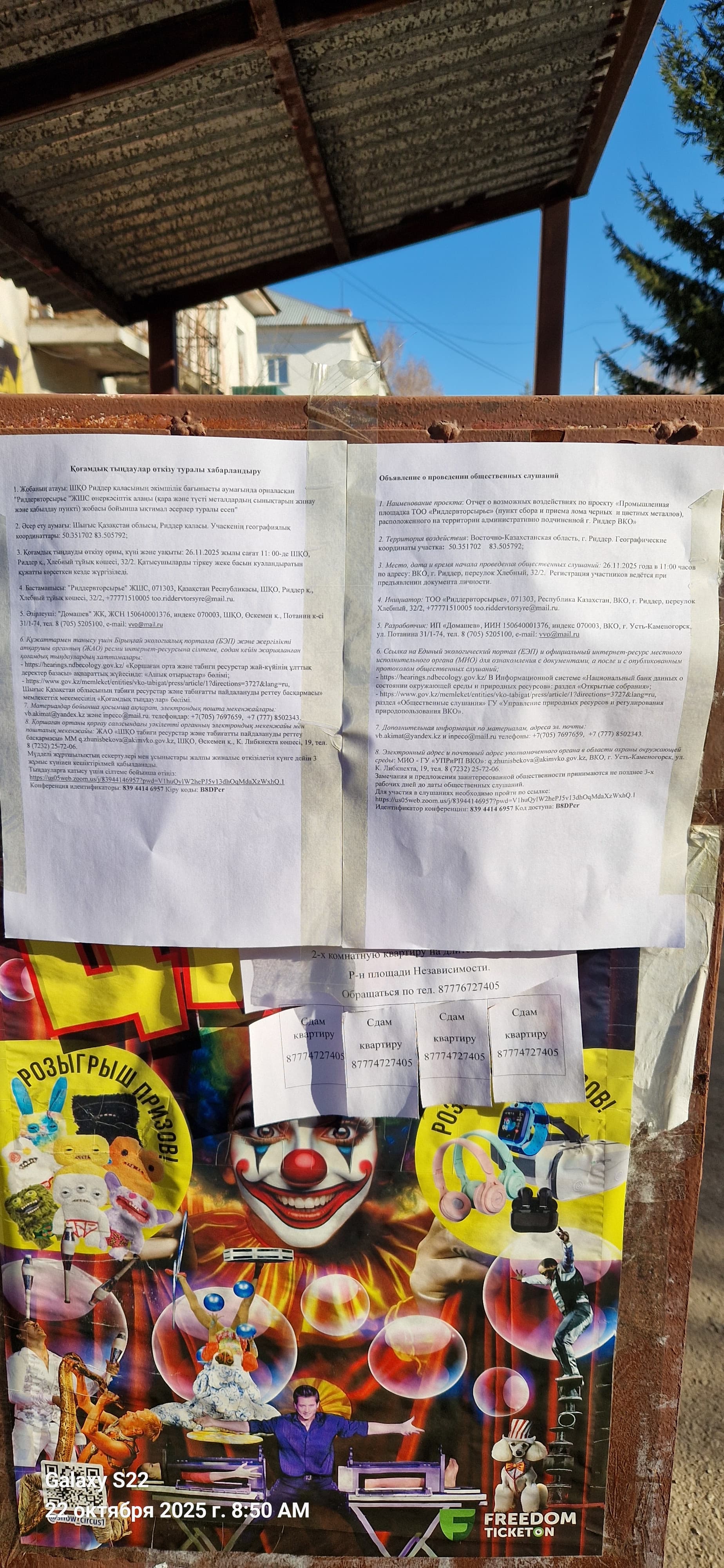 6.3. расположение мест, специально предназначенных для Размещения печатных объявлений (доски объявлений): Акимат г. Риддер