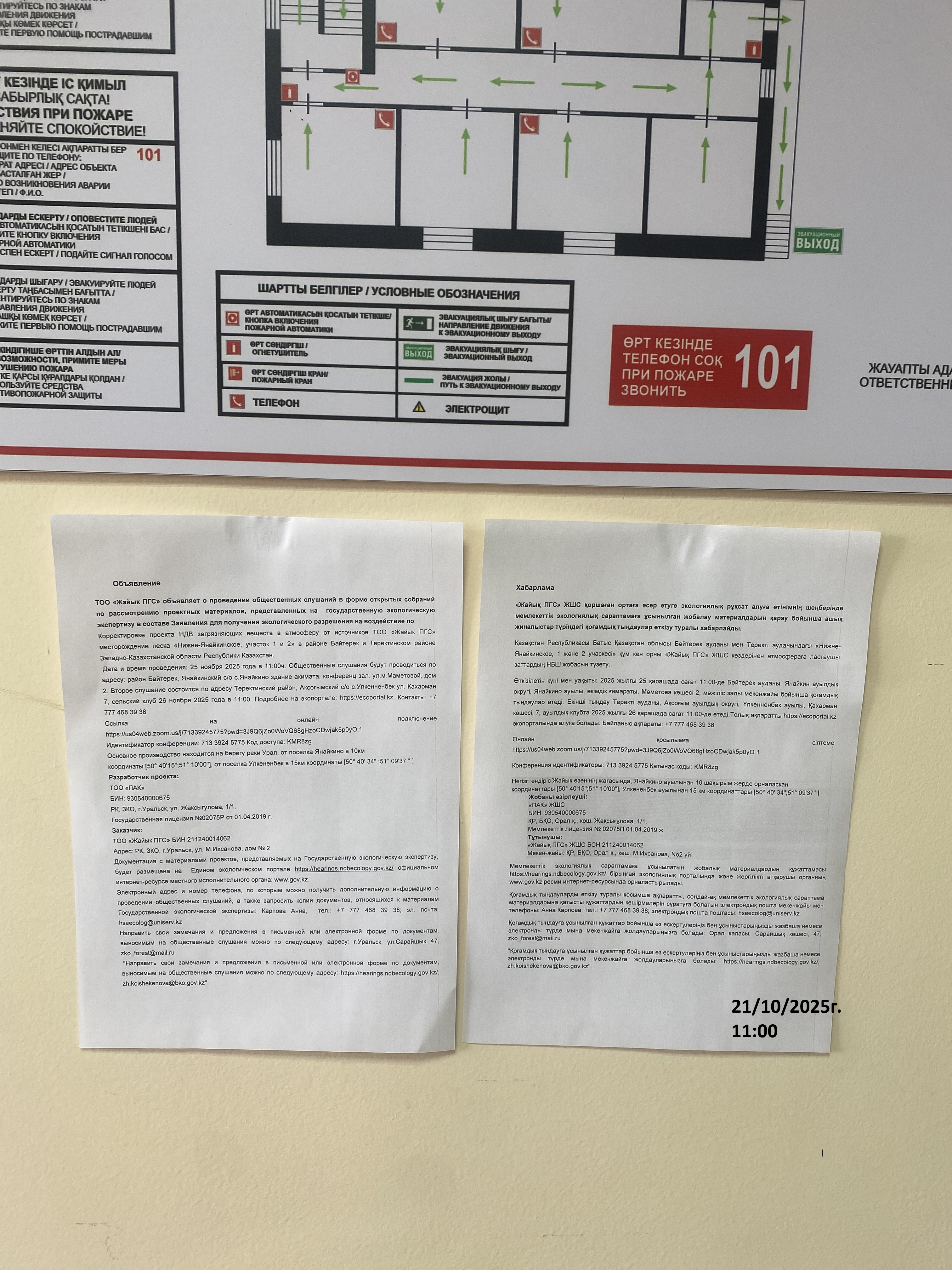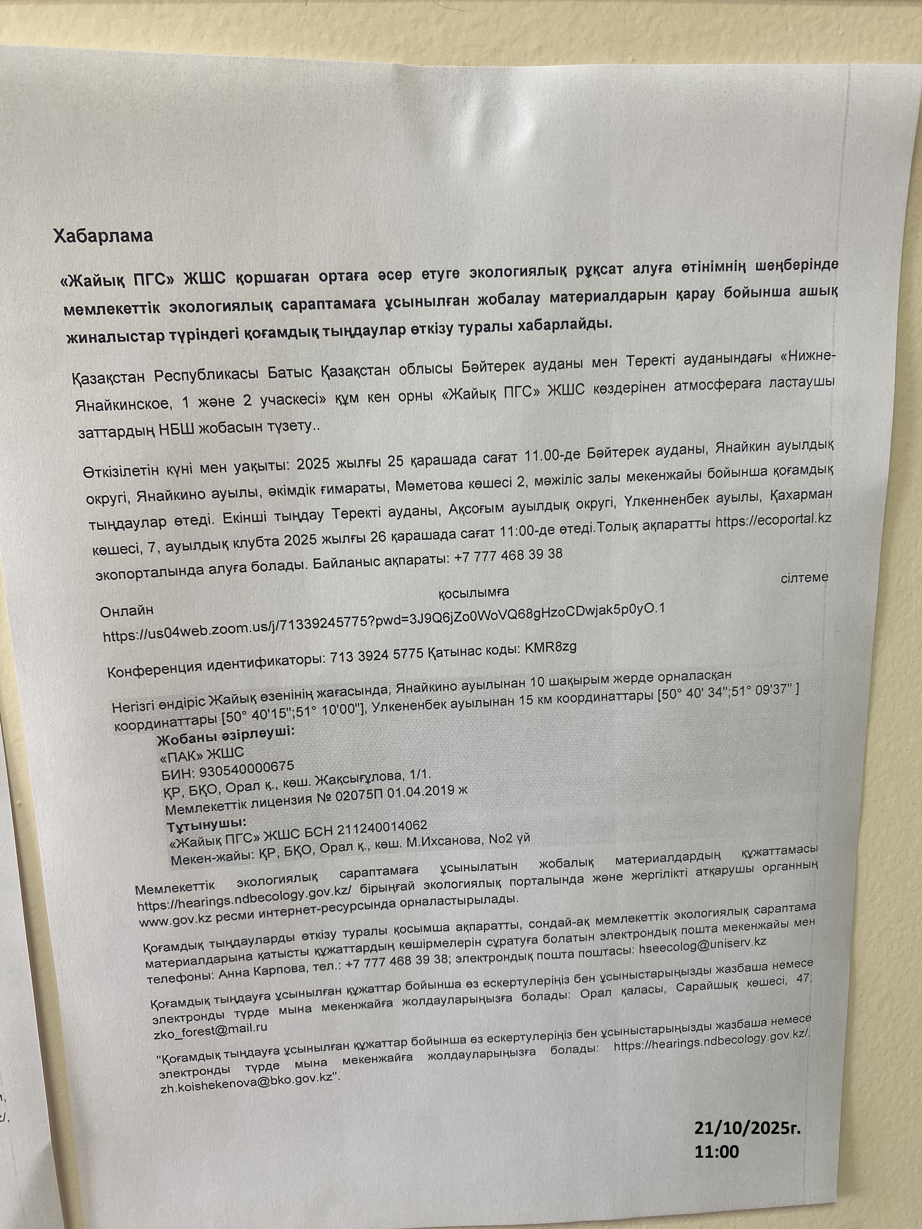 3. Общественные слушания организованны: Управление природных ресурсов и регулирования природопользования Западно-Казахстанской области, zko_forest@bko.gov.kz,
