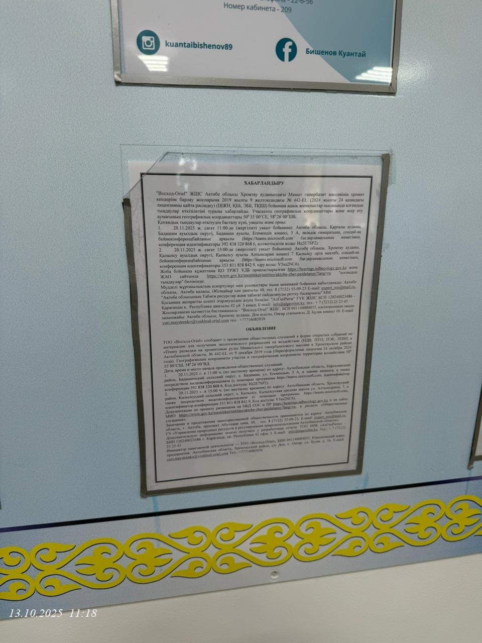 3. Общественные слушания организованны: Управление природных ресурсов и регулирования природопользования Актюбинской области, expert_oos@mail.ru,