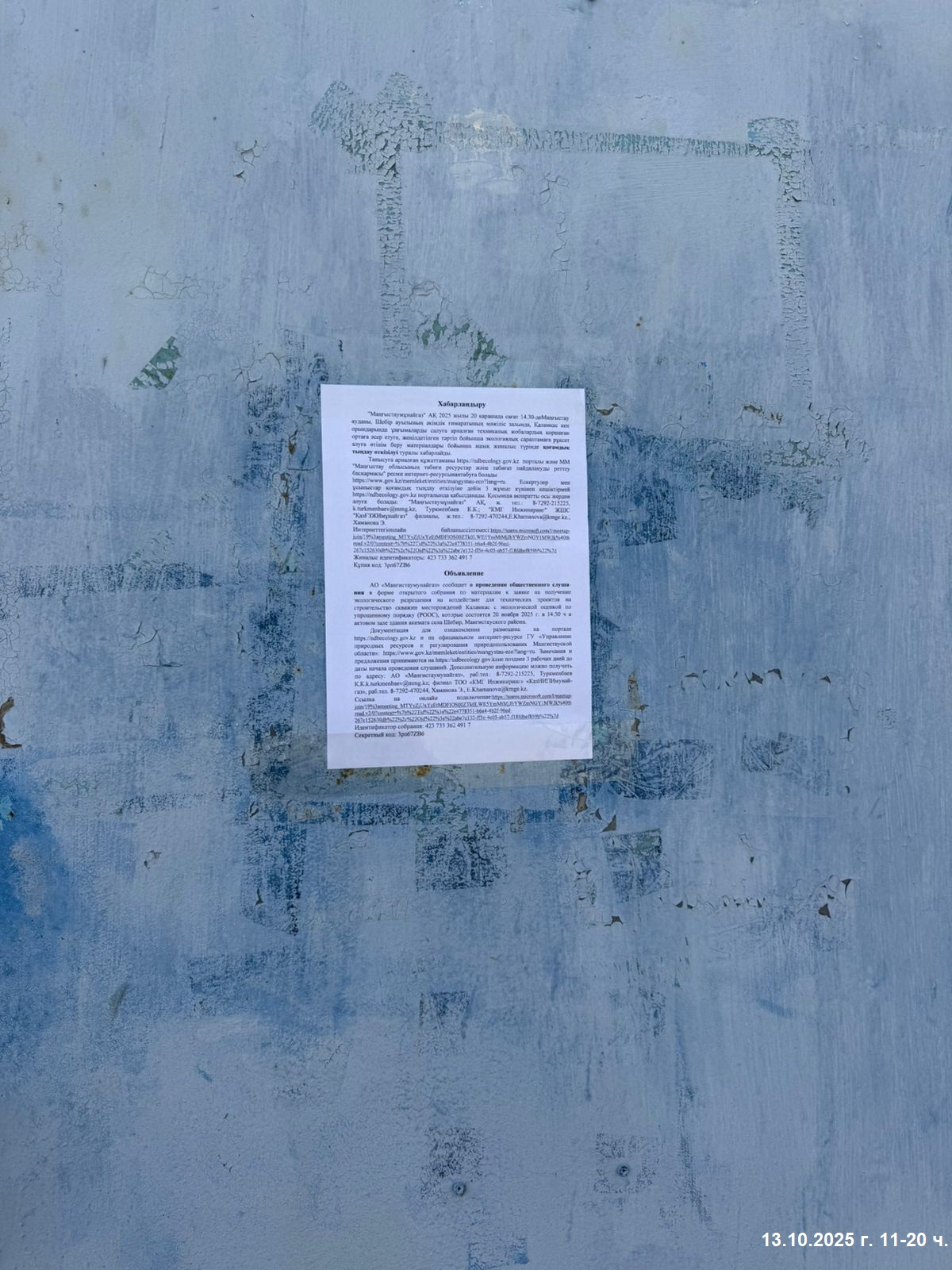 6. Объявление о проведении общественных слушаний на казахском и русском языках будет распространено следующими способами: