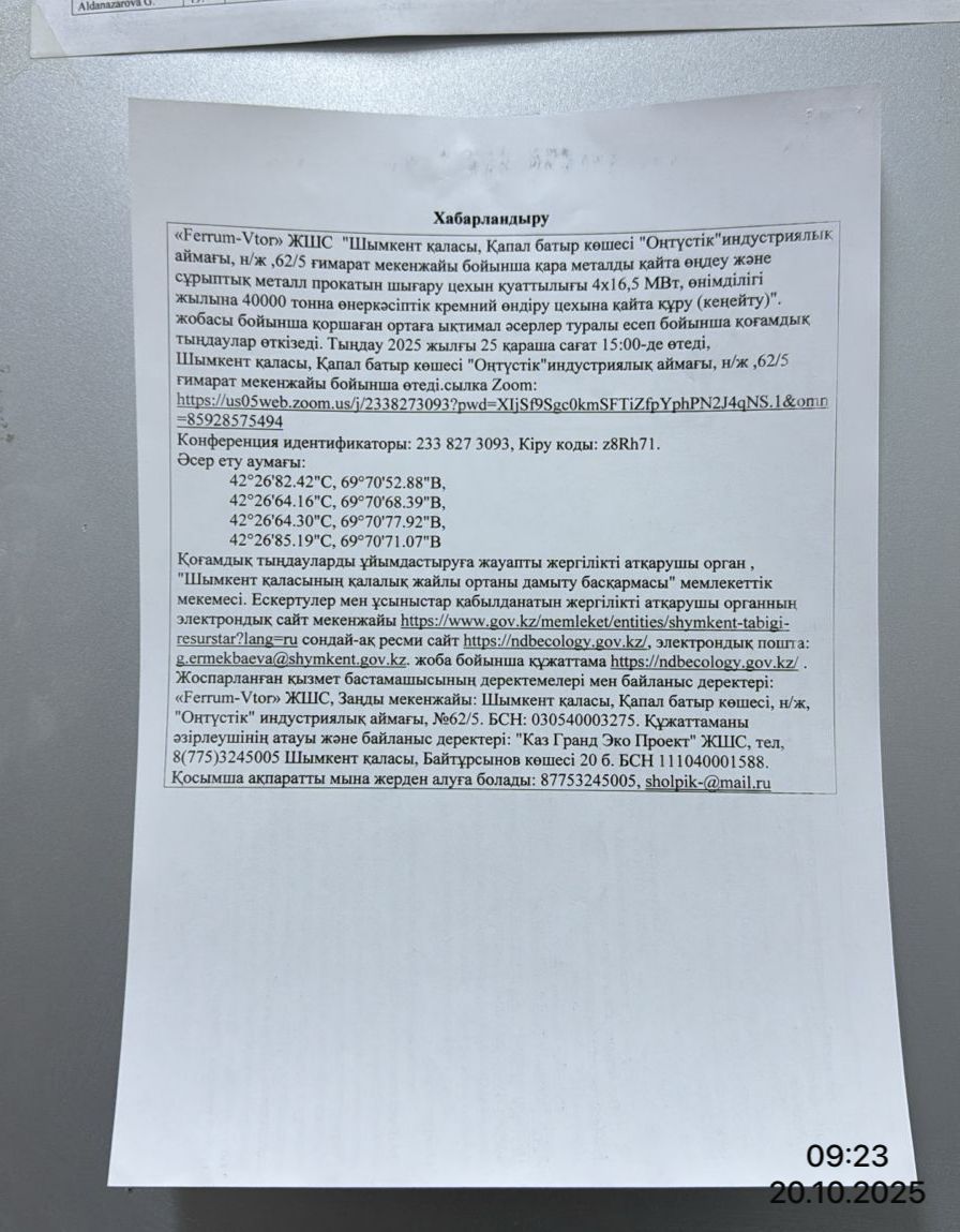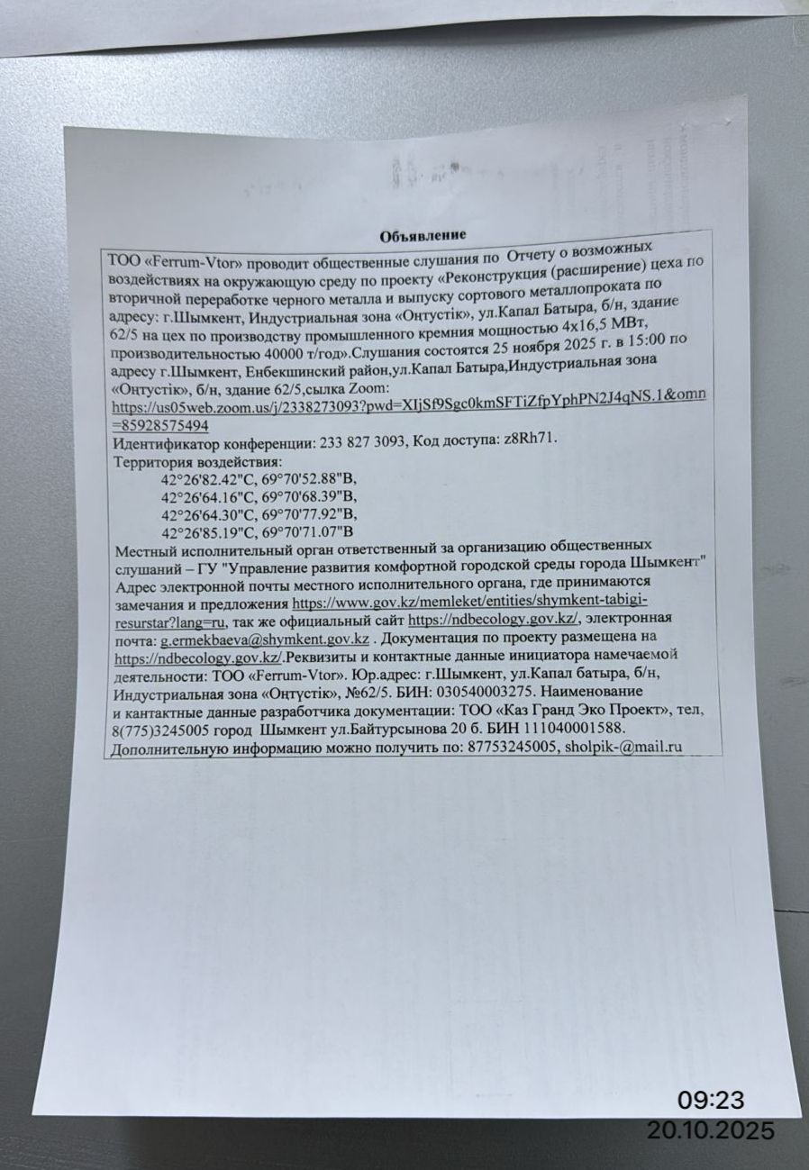 3. Общественные слушания организованны: Управление развития комфортной городской среды г.Шымкент, g.ermekbaeva@shymkent.gov.kz,
