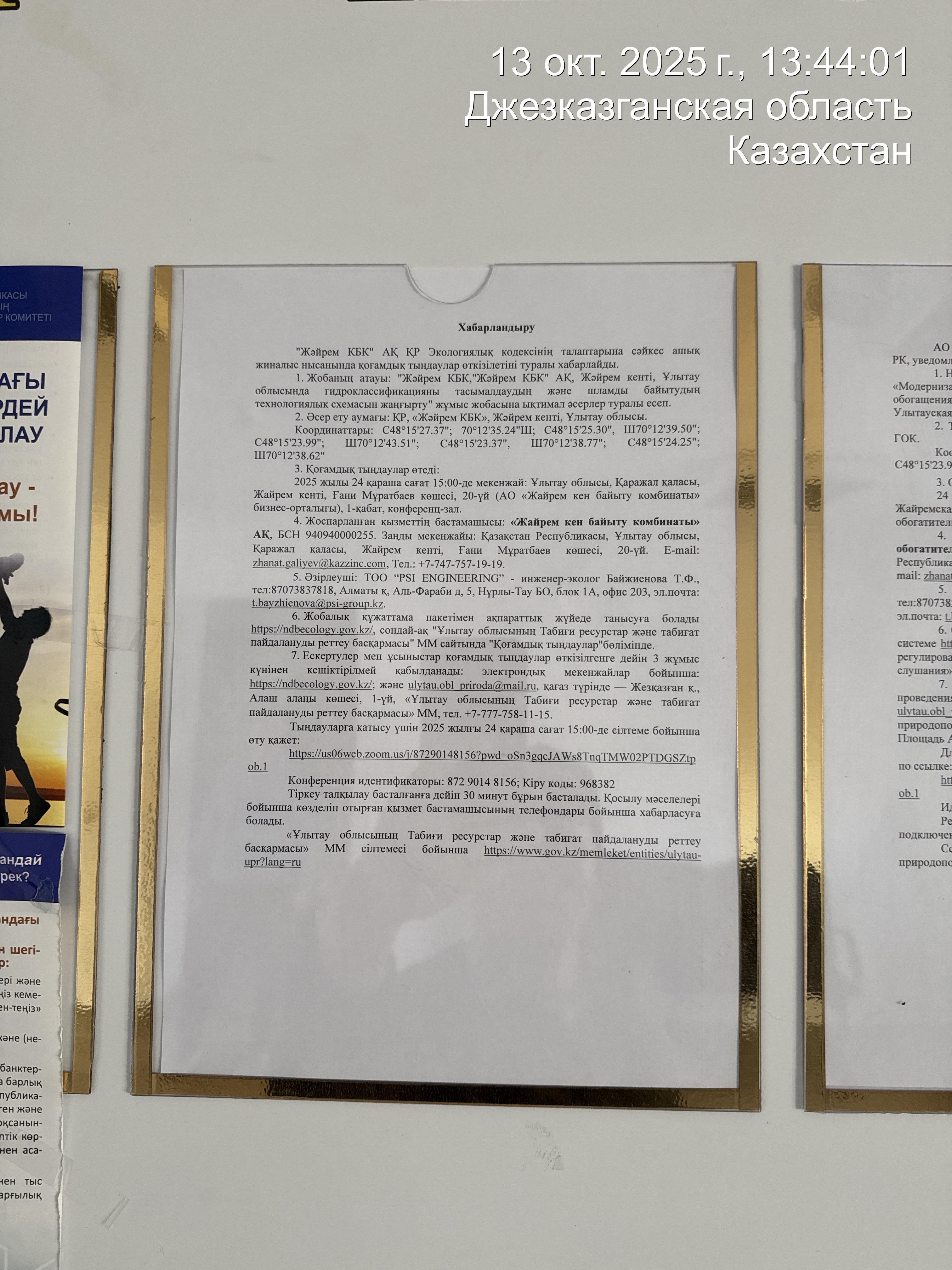 3. Общественные слушания организованны: Главный специалист УПР и ПР область Ұлытау, ulytau.obl_priroda@mail.ru,