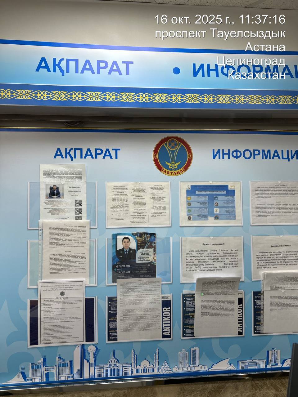 6.3. расположение мест, специально предназначенных для Размещения печатных объявлений (доски объявлений): г.Астана, район "Байконур", ул. Отырар, 5, доска объявлений