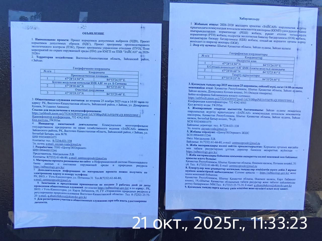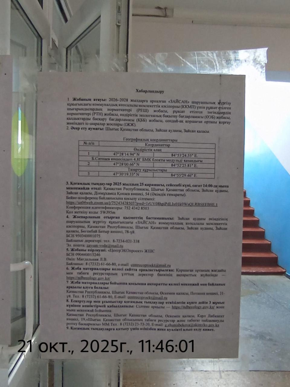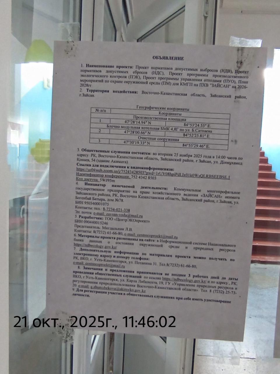 3. Общественные слушания организованны: Управление природных ресурсов и регулирования природопользования Восточно-Казахстанской области, g.zhunisbekova@akimvko.gov.kz,