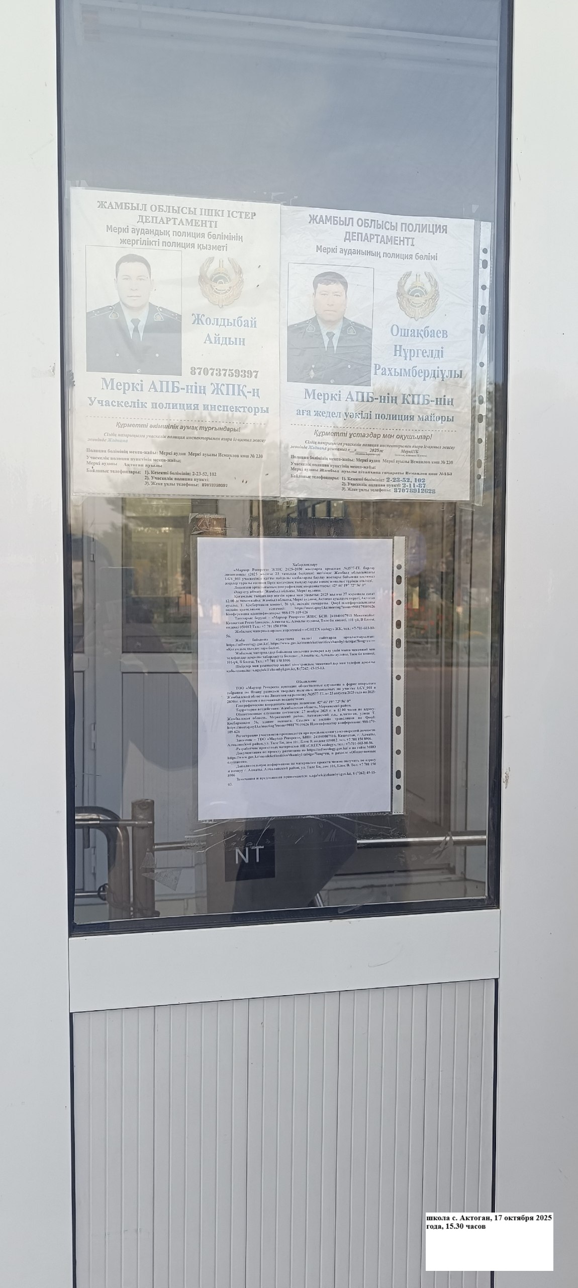 3. Общественные слушания организованны: Управление природных ресурсов и регулирования природопользования Жамбылской области, s.agabek@zhambyl.gov.kz,