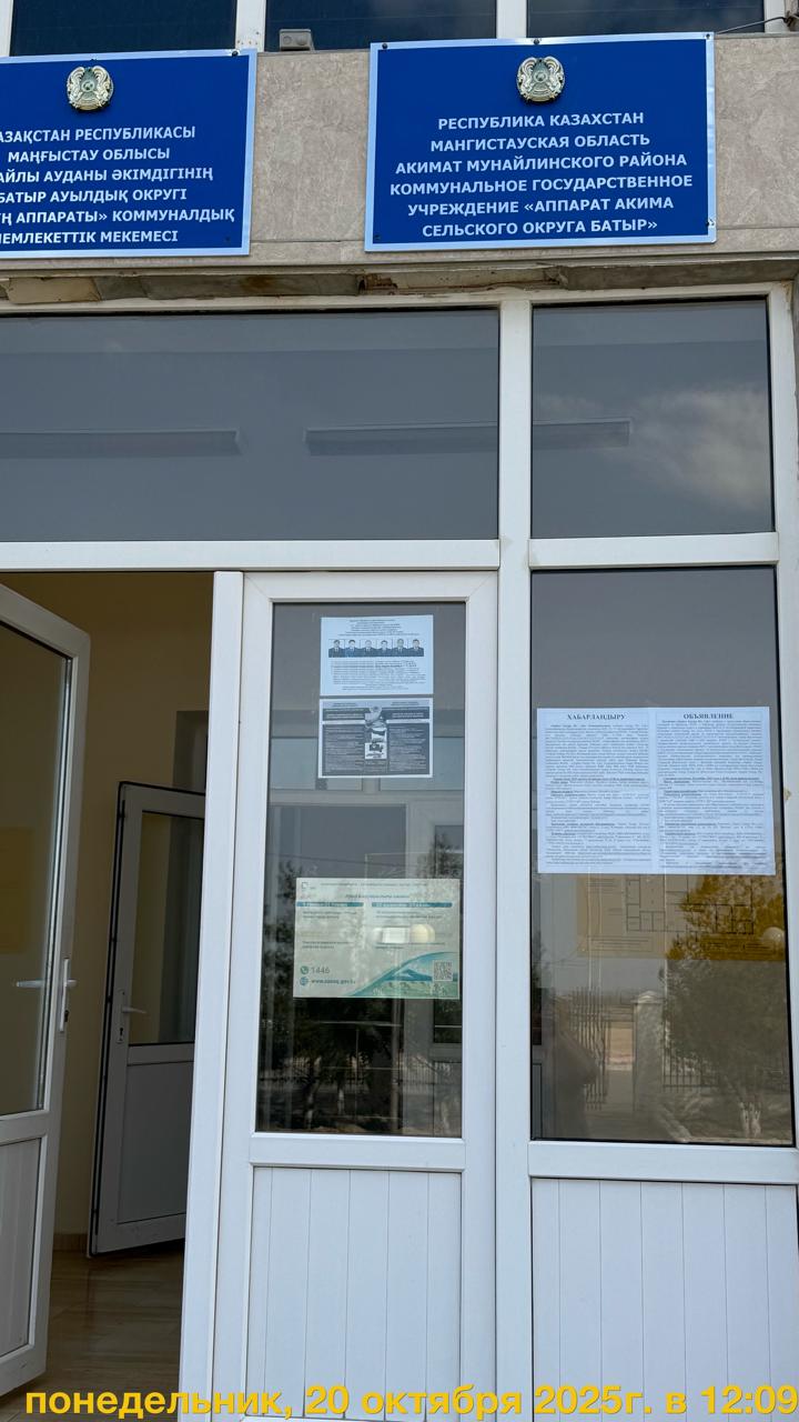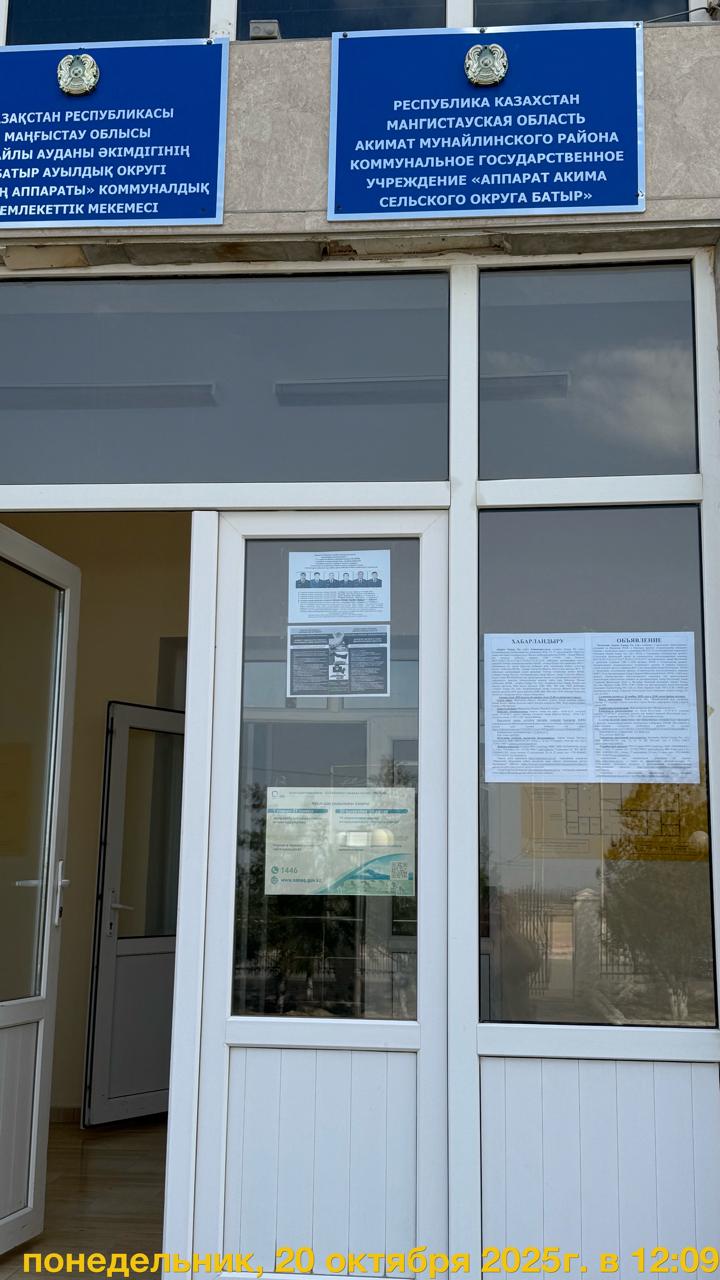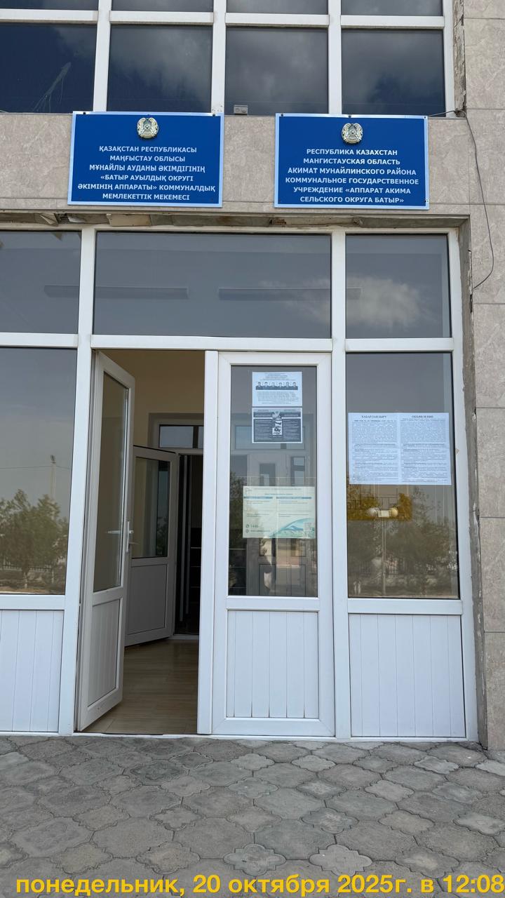 1.2. Место проведения: Мангистауская область, Мунайлинский район, с.о. Батыр, мкр-он Емир, улица 6, здание 44Б КГУ "Аппарат акима сельского округа Батыр"