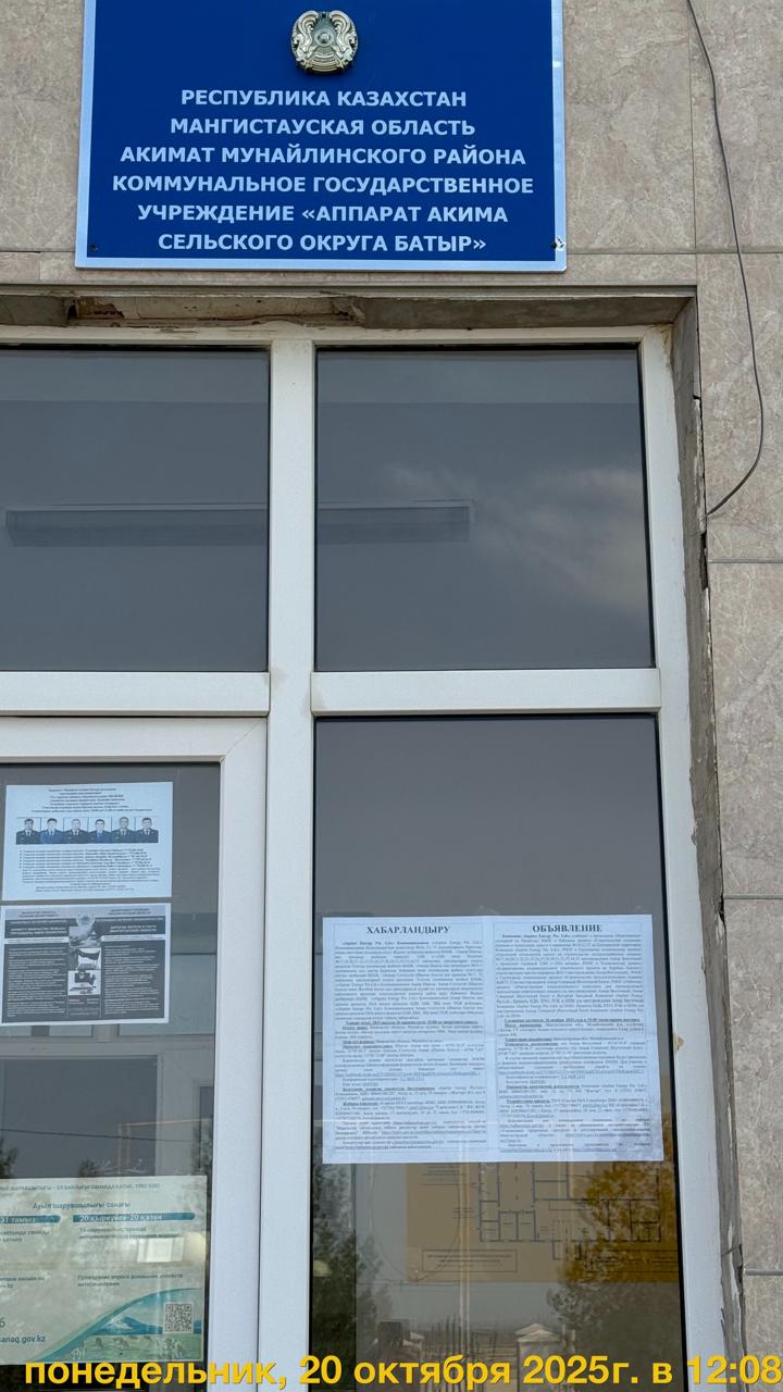 3. Общественные слушания организованны: Управление природных ресурсов и регулирования природопользования Мангистауской области, s.bazarbay@mangystau.gov.kz,