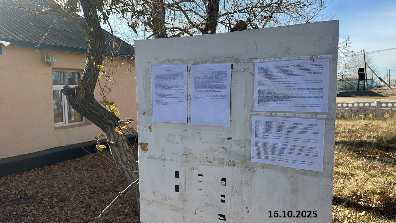 6.3. расположение мест, специально предназначенных для Размещения печатных объявлений (доски объявлений): Акимат, доска объявлений предприятия