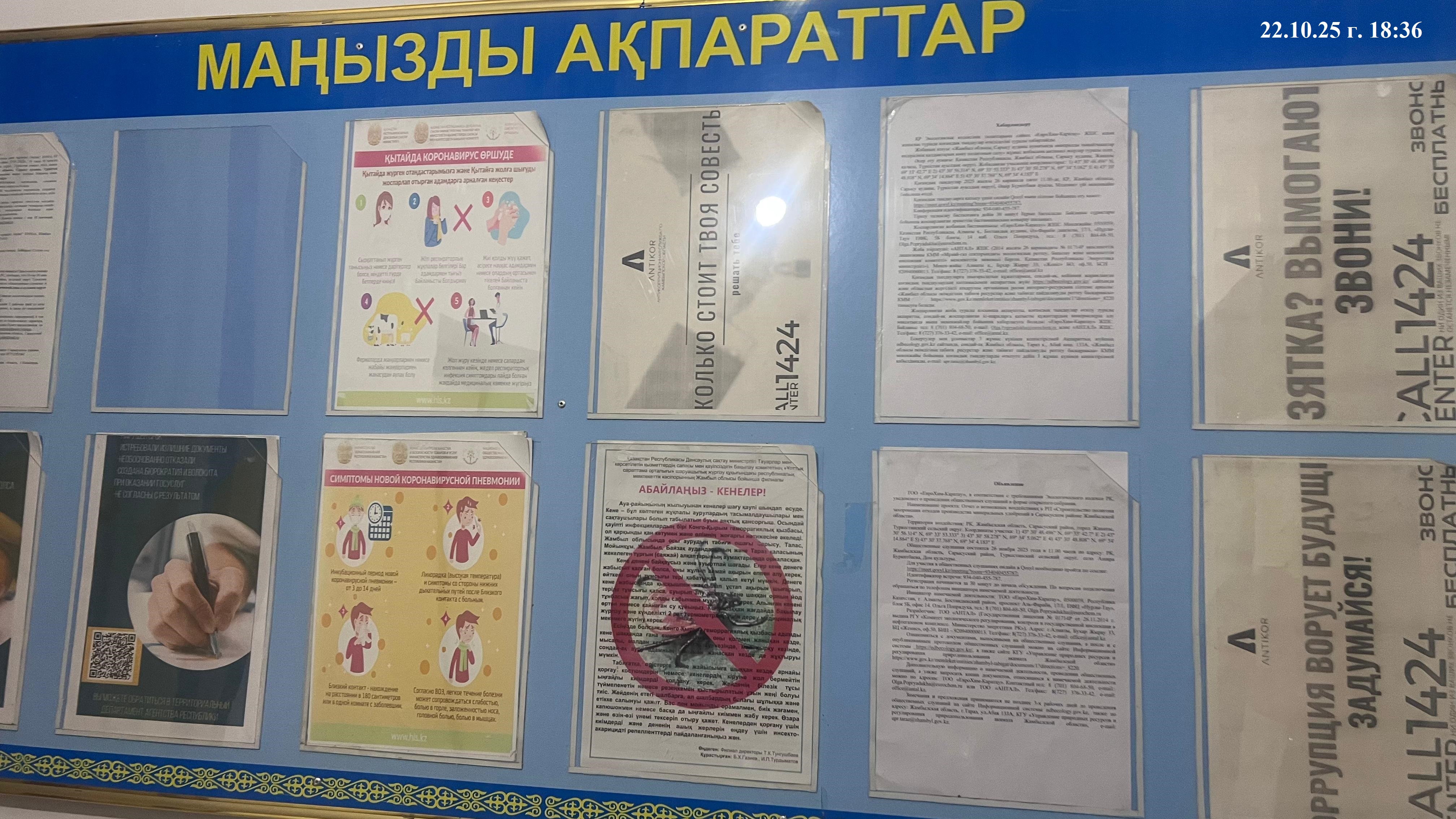 6.3. расположение мест, специально предназначенных для Размещения печатных объявлений (доски объявлений): Доска объявлений Акимата, общественные места