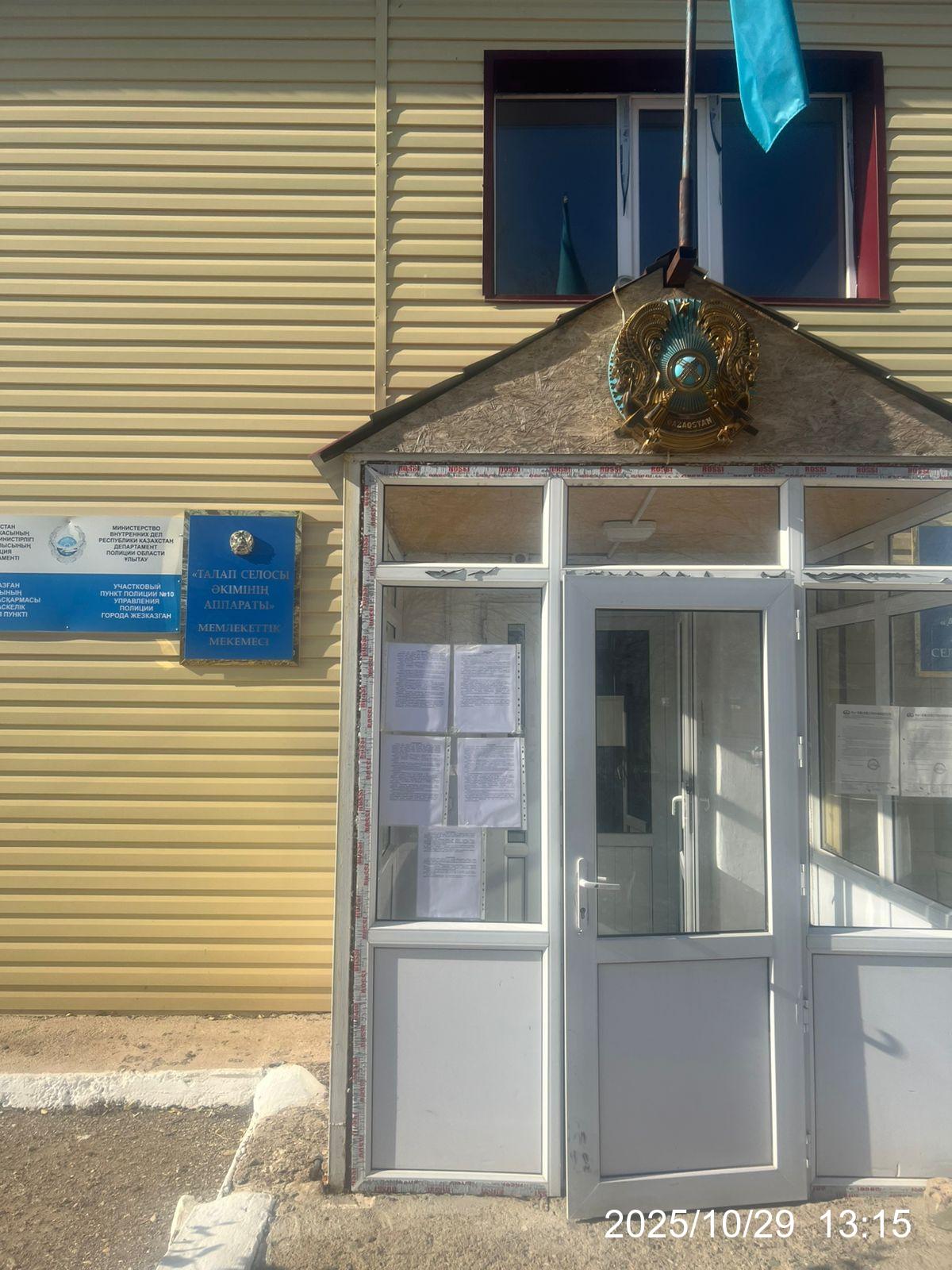 1.2. Место проведения: область Ұлытау, Жезказган Г.А., Талапский с.о., с.Талап, ул. Мәңгілік Ел, 3 (здание ГУ «Аппарат акима села Талап»). Ссылка для онлайн подключения: https://us06web.zoom.us/j/3467453931?pwd=OWFnOGVpQjFMTmE0TDVtRllFcXlZdz09&omn=84377772551 Идентификатор конференции: 346 745 3931 Код доступа: YGC0Ki