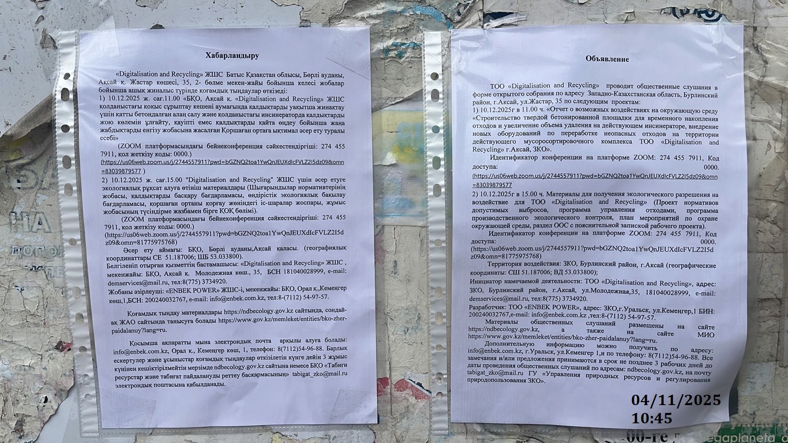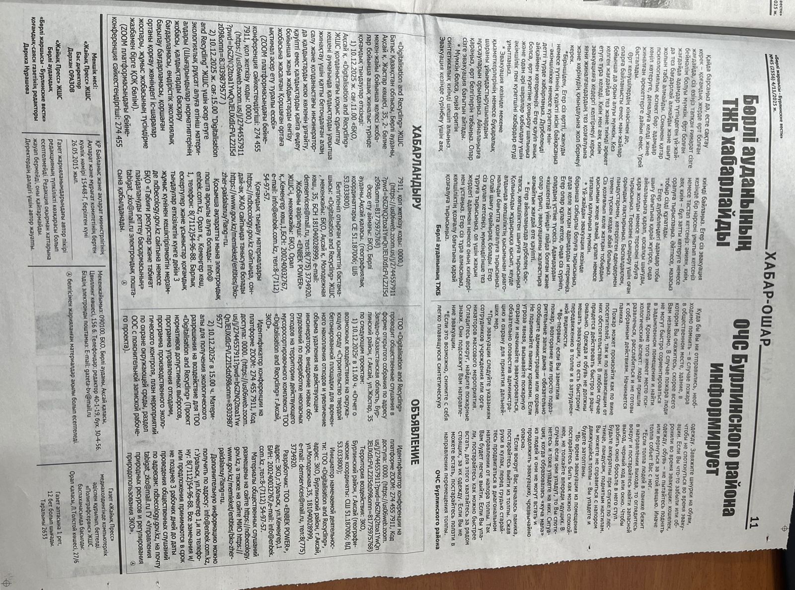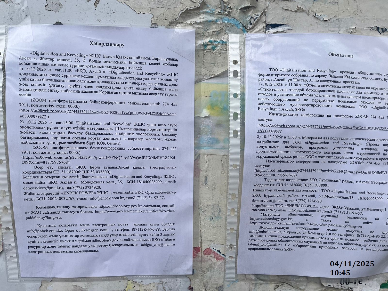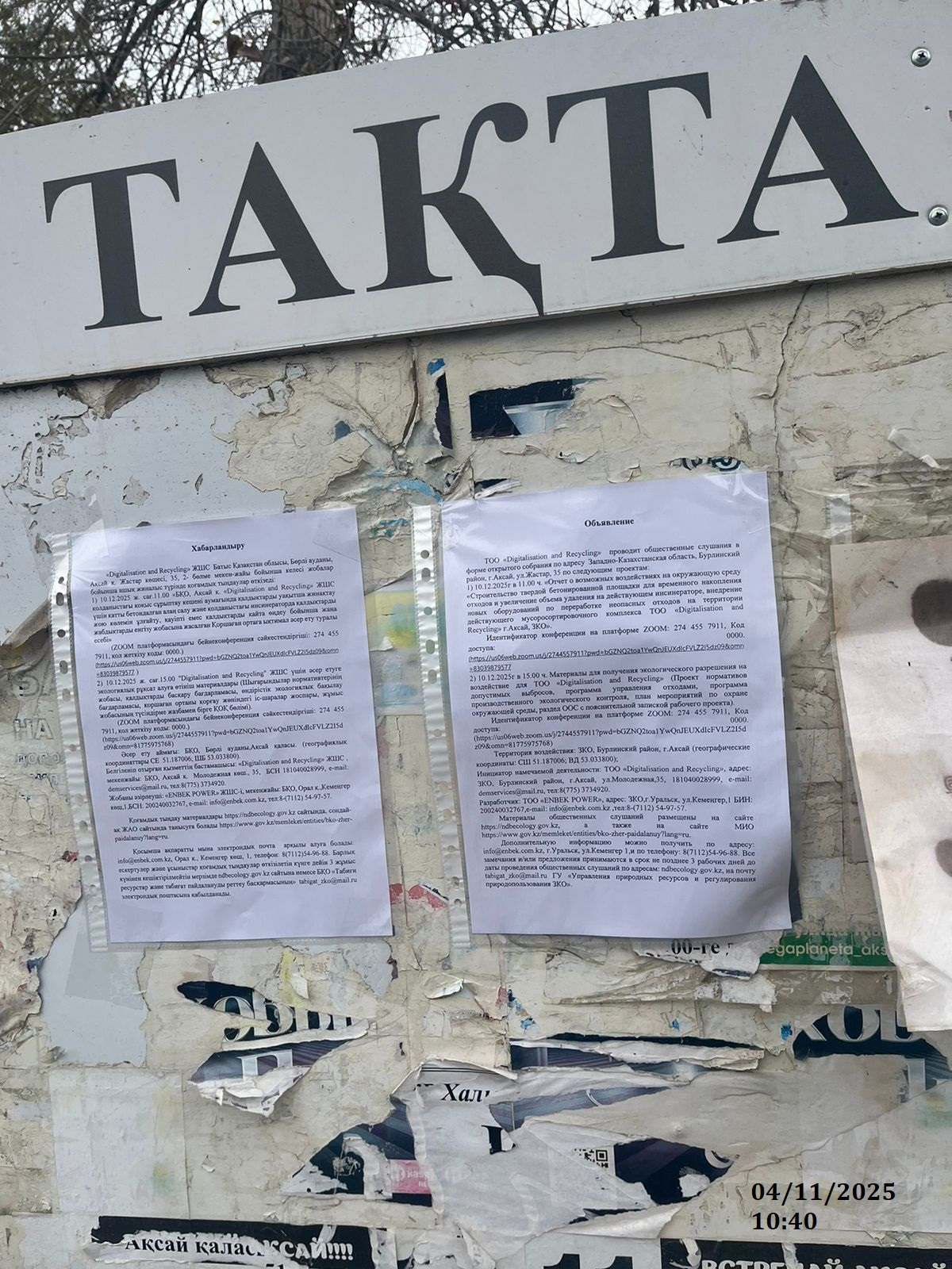3. Общественные слушания организованны: Управление природных ресурсов и регулирования природопользования Западно-Казахстанской области, zko_forest@bko.gov.kz,